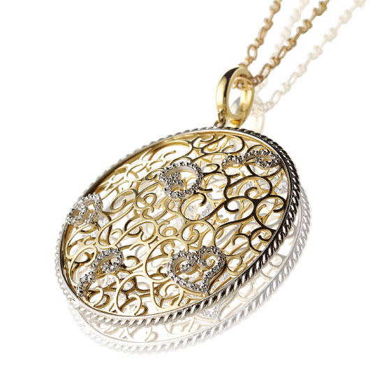 Presented here is a yellow gold necklace with a beautifully crafted pendant. The delicate pendant is crafted with yellow and white gold accented with well-cut diamonds, presenting a touch of elegance. This exquisite jewelry goes well with V-neck tops.