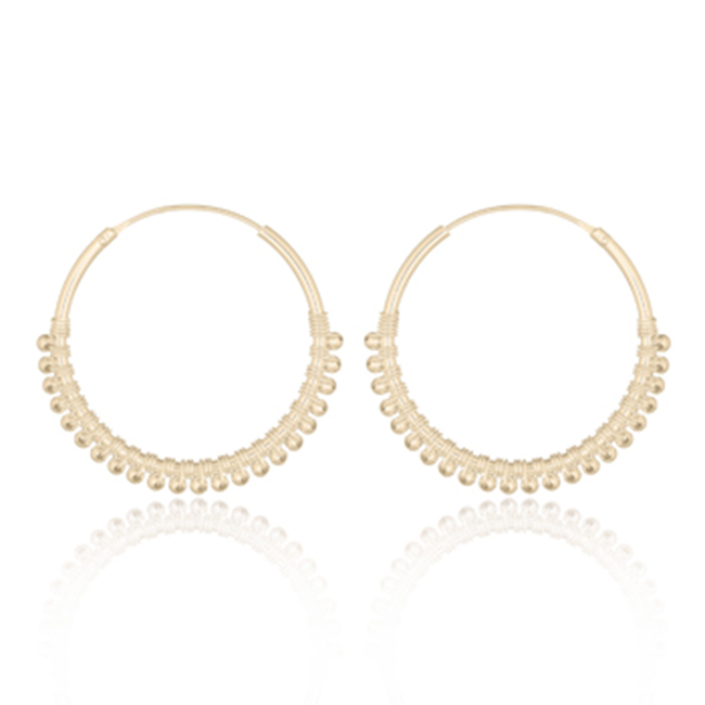 Yellow Gold Plated Beads Twirled Hoop Earrings