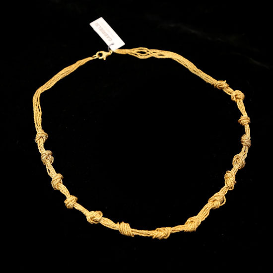 This multi-strand yellow gold necklace features chunky knot details for a stylish look. Made with a fine yellow gold plating, the necklace shines dynamically. This gold necklace creates countless mixing-and-matching possibilities with its versatile, minimalistic design.