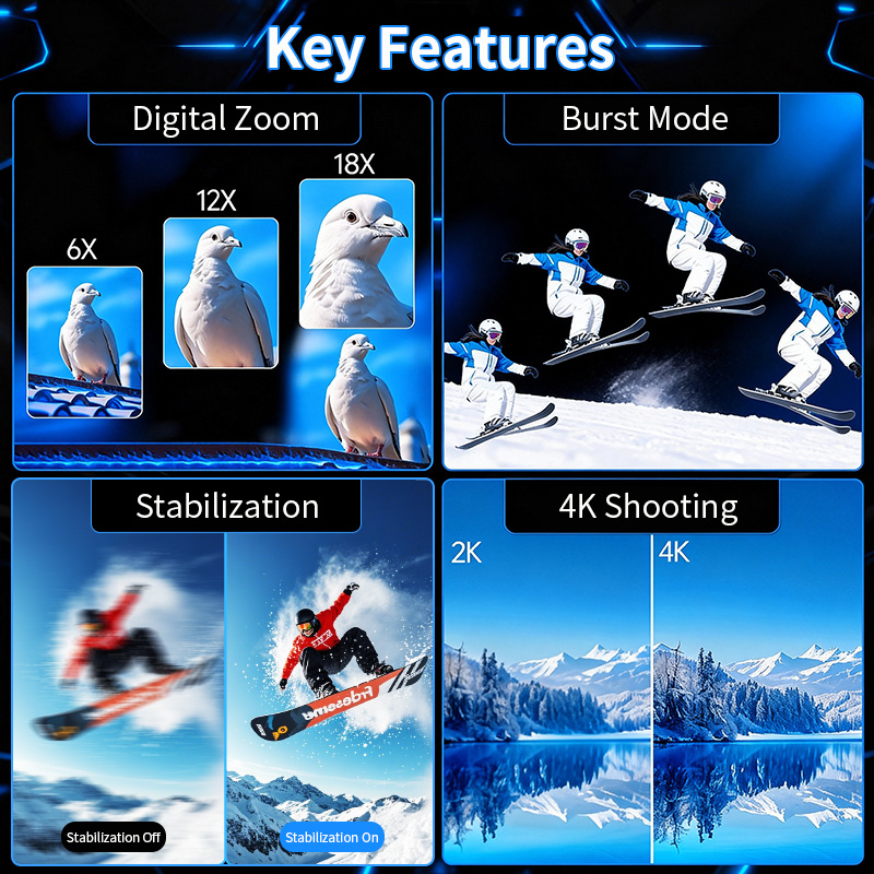 1)4K/60fps Ultra HD Video Recording; 56MP Shooting Pixels