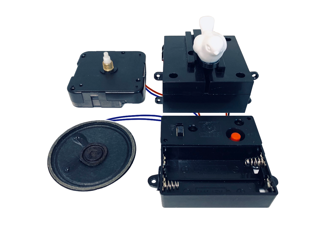 This Cuckoo mechanism kit can help to create variety of cuckoo clocks. To improve the limit of tradition cuckoo mechanism shape, we make the melody box, clock movement, speaker and bird box separately to make cuckoo clocks with more possibility and creativity. Only select one cuckoo mechanism kit, then you can establish for different cuckoo clocks!