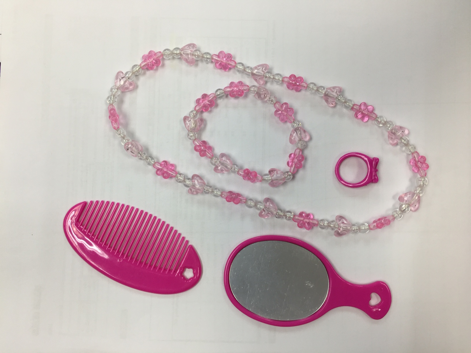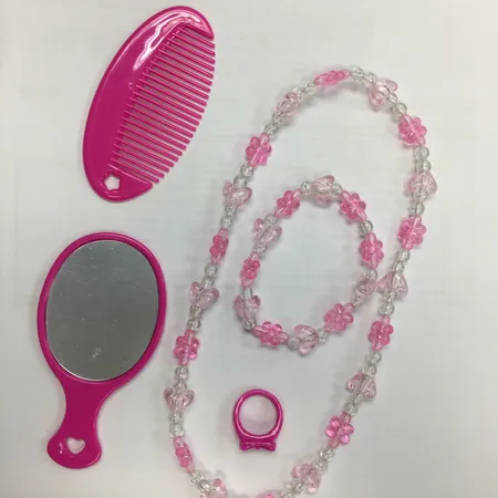 Young girl creative their beauty set ( necklace and bracelet and ring and comb and mirror)