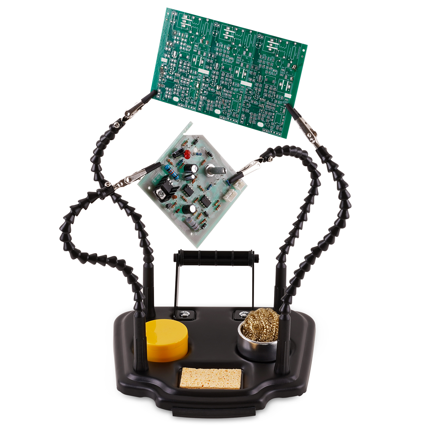 The excellent third-hand for your work : This version comes with a cleaning ball, a solder wire stand, a sponge and rosin. Widely use for soldering, crafting, hobby and any application where a third hand is needed;