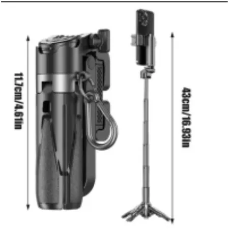 [3-in-1 Multi-Functional Design] Seamlessly switch between a selfie stick, a grip handle, and a sturdy four-legged tripod to capture smooth and professional-quality footage in any situation. Whether you're vlogging, live streaming, or taking group selfies, this all-in-one tool has got you covered.