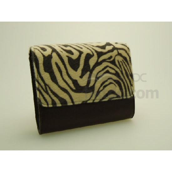 • Zebra fake fur with non-texture PVC cosmetic bag.