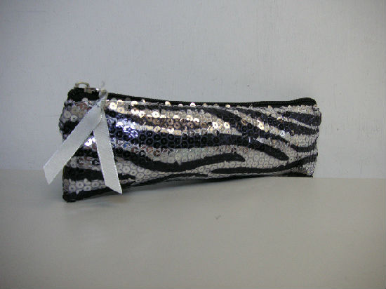 • Zebra printed satin with sequin on the top small cosmetic bag.