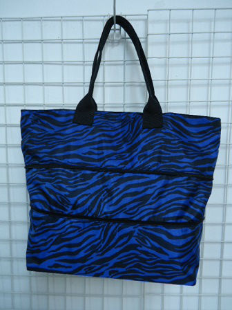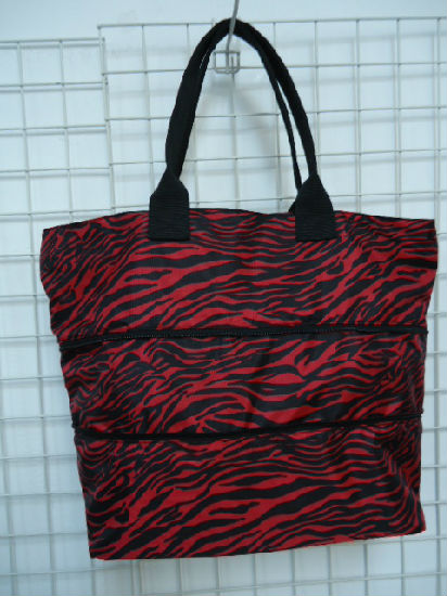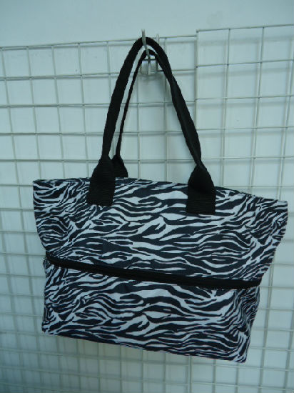 • Zebra pattern polyester stretch tote bag.