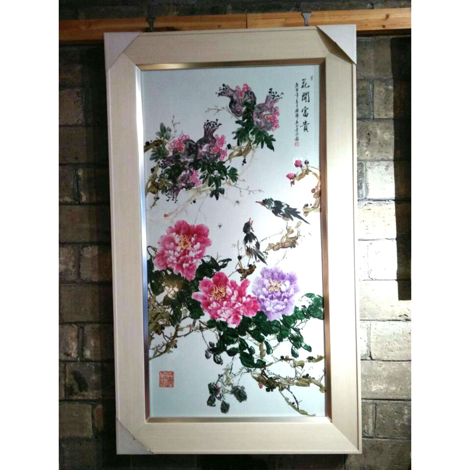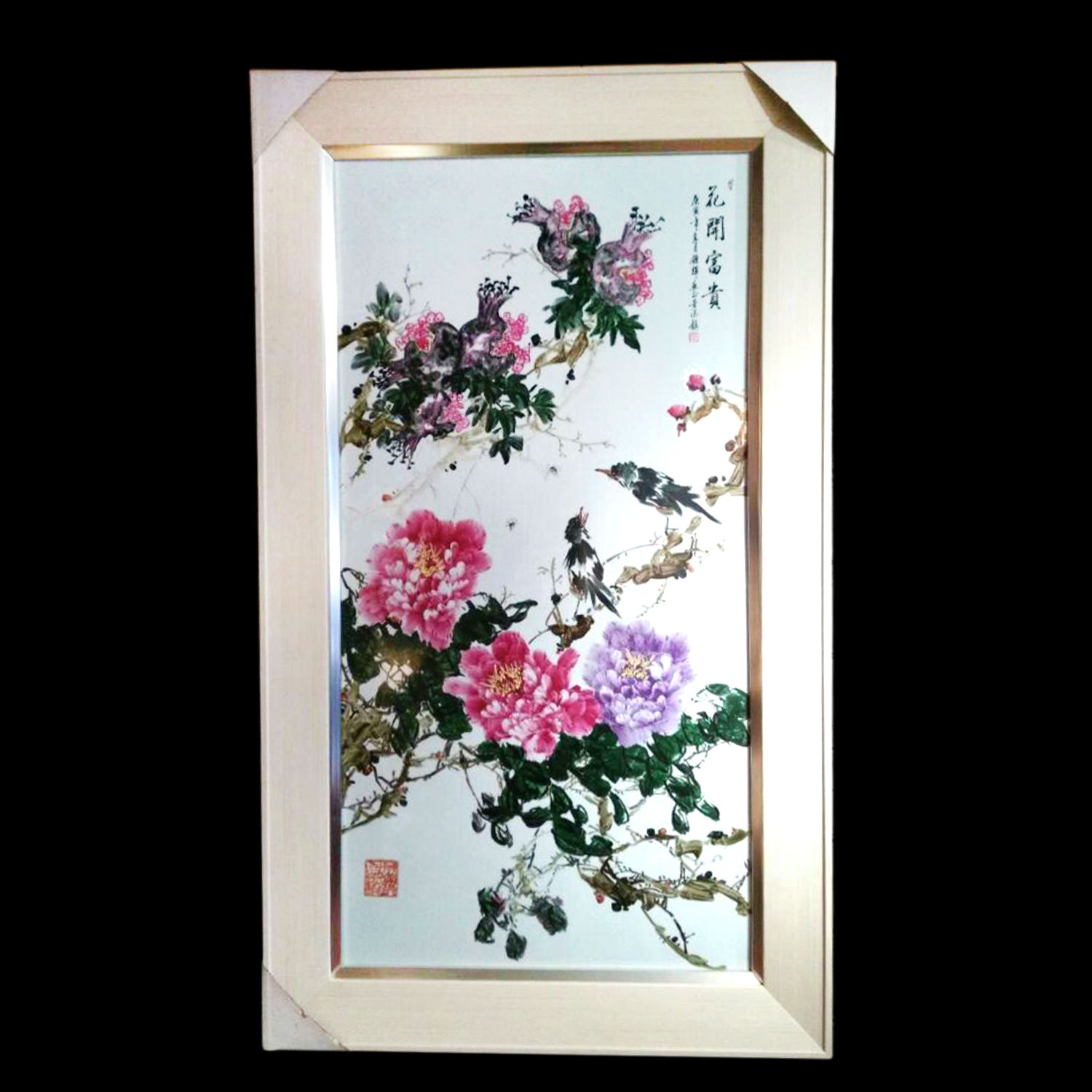 Add warmth and quiet beauty to any décor with this vertical painting. This painting features drawings of birds perching amongst lovely blossoms in rich details. The painting comes with the Chinese saying “fortune comes with blooming flowers” on the top right corner. This vertical painting makes a perfect gift choice for housewarming party or any happy occasion.