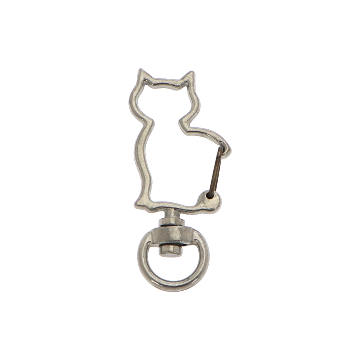 This snap hook flaunts a durable zinc alloy construction and comes in the design of a cute cat. It is connected to a round swivel ring and is easy to attach and remove. The zinc alloy snap hook comes in a shiny silver tone and is a great accessory for decoration use.