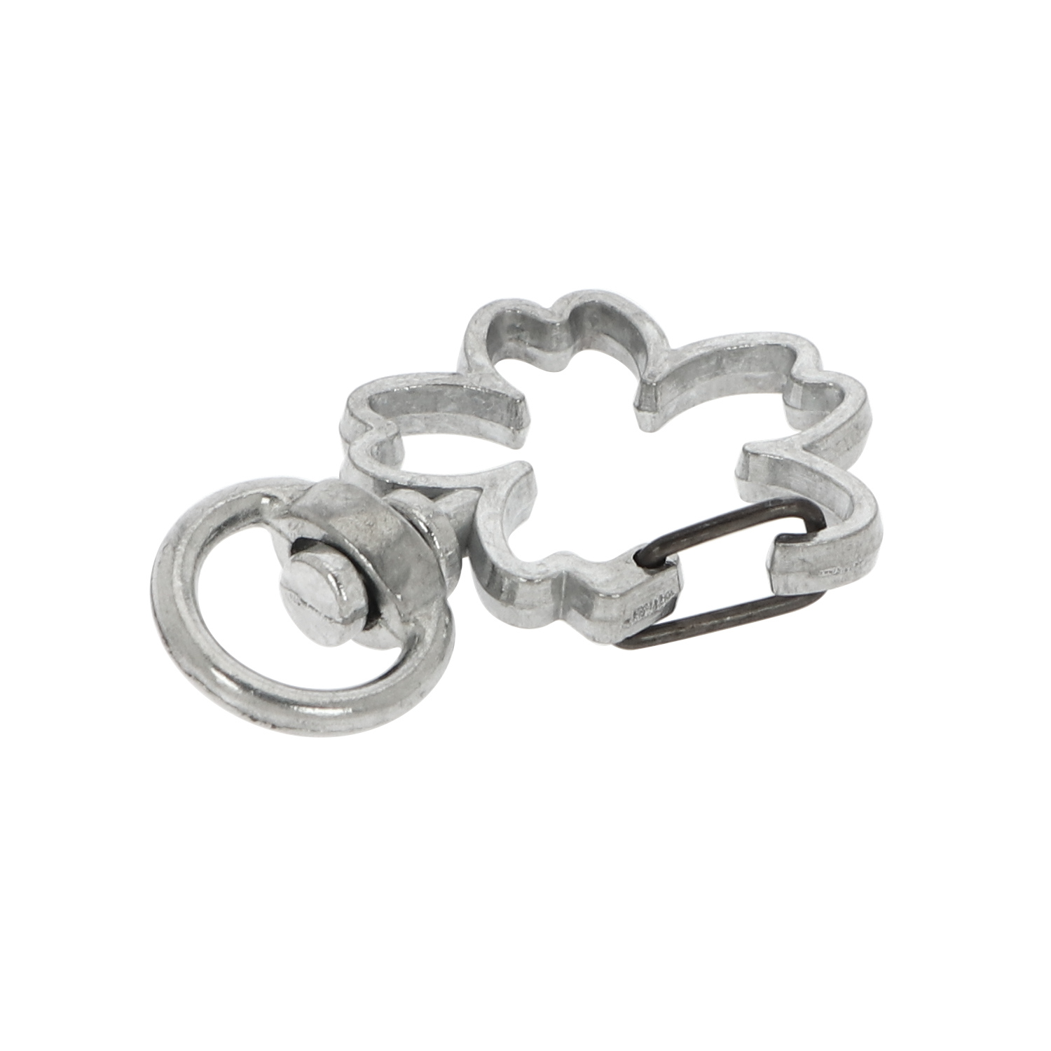 Connect chains, ropes, lanyards and more easily by using this zinc alloy snap hook. It comes in a flower shape and has a shiny silver toned exterior. this zinc alloy snap hook is connected to a round swivel ring and is well-crafted to ensure long lasting durability.