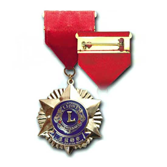 The golden-toned zinc alloy medal is plated with soft enamel with a highly polished finish. It comes with a safety pin and ribbon tab for easy attachment. This medal can be customized with your own designs and materials.