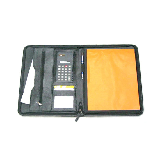 This zip-up folder comes with a clamshell design for easy opening. It is divided into compartments in various shapes for calculators, name cards, paper and a pen. The zipper is sturdily made for long lasting and repeated use.