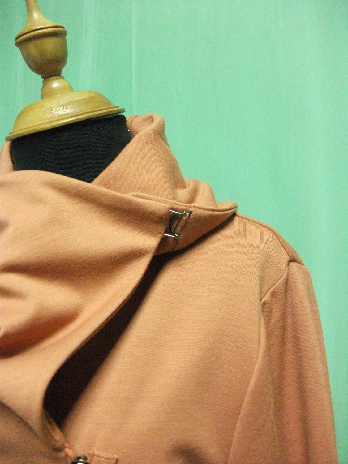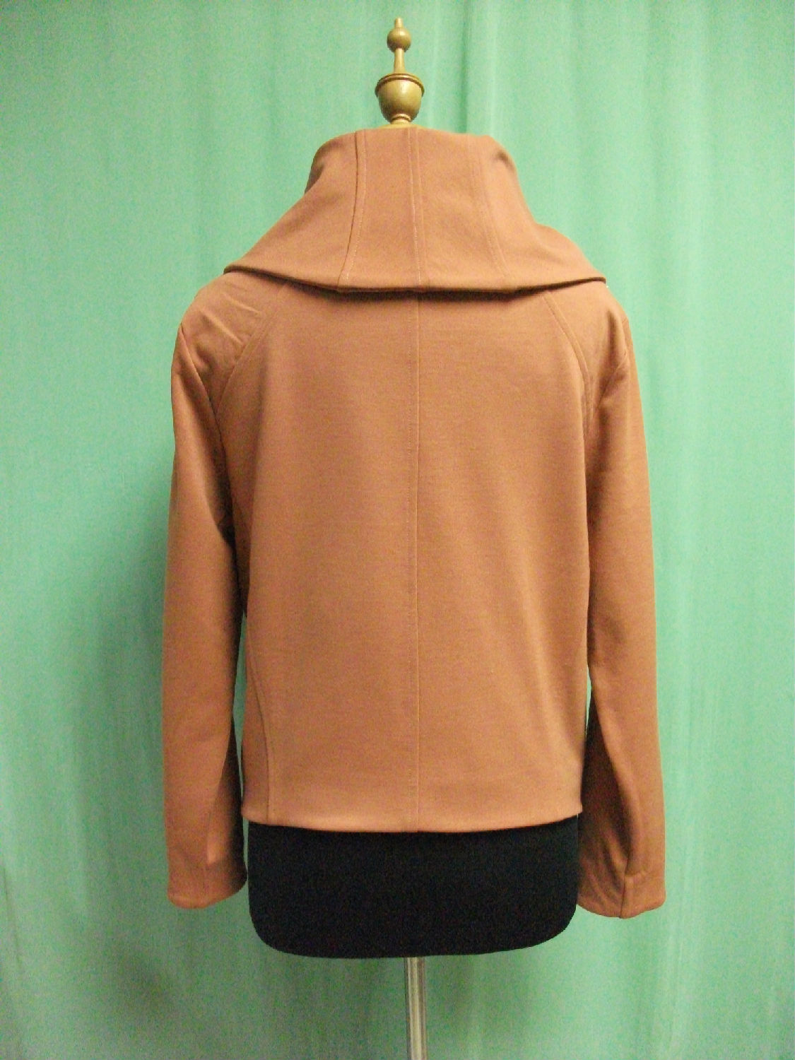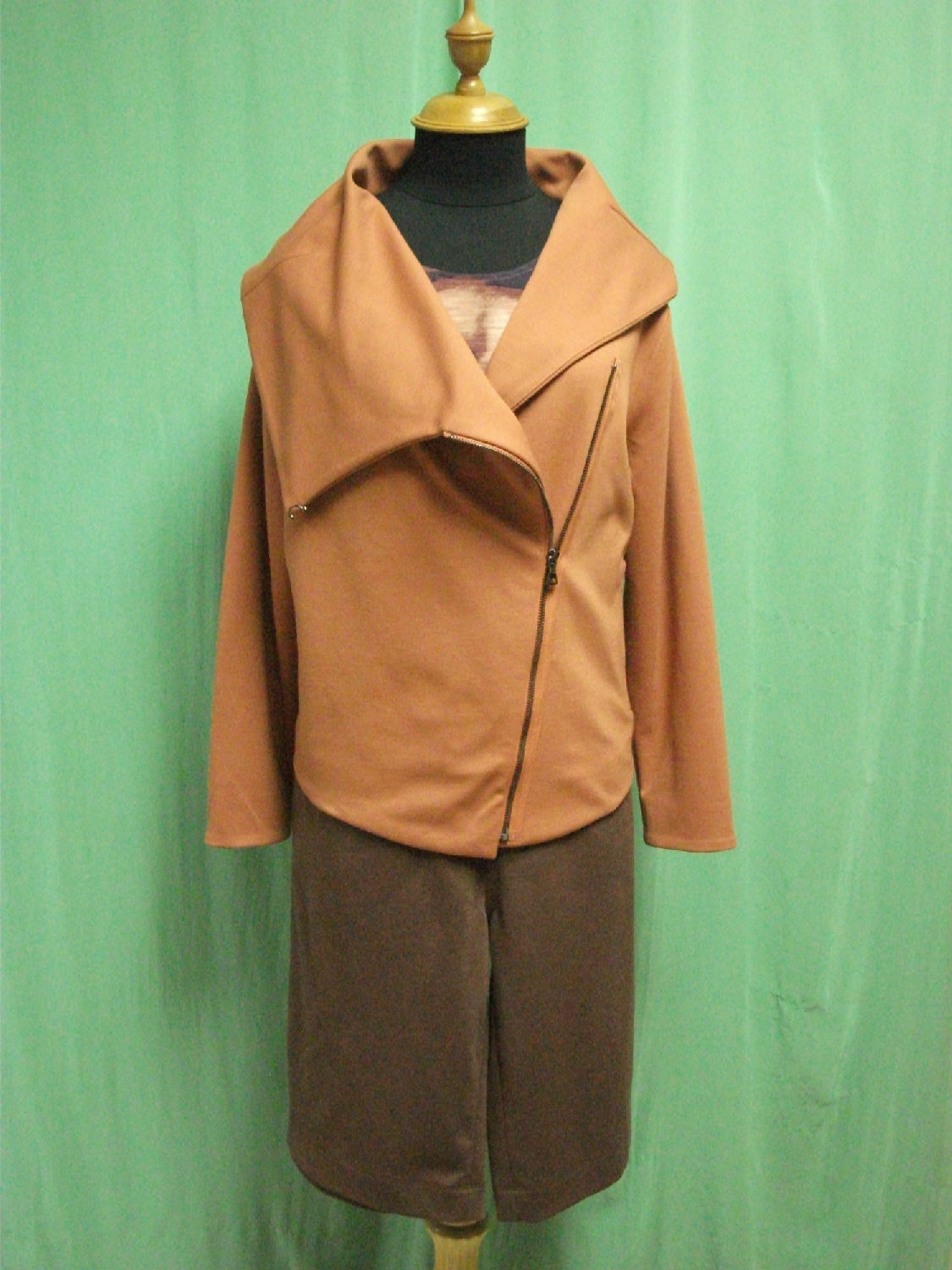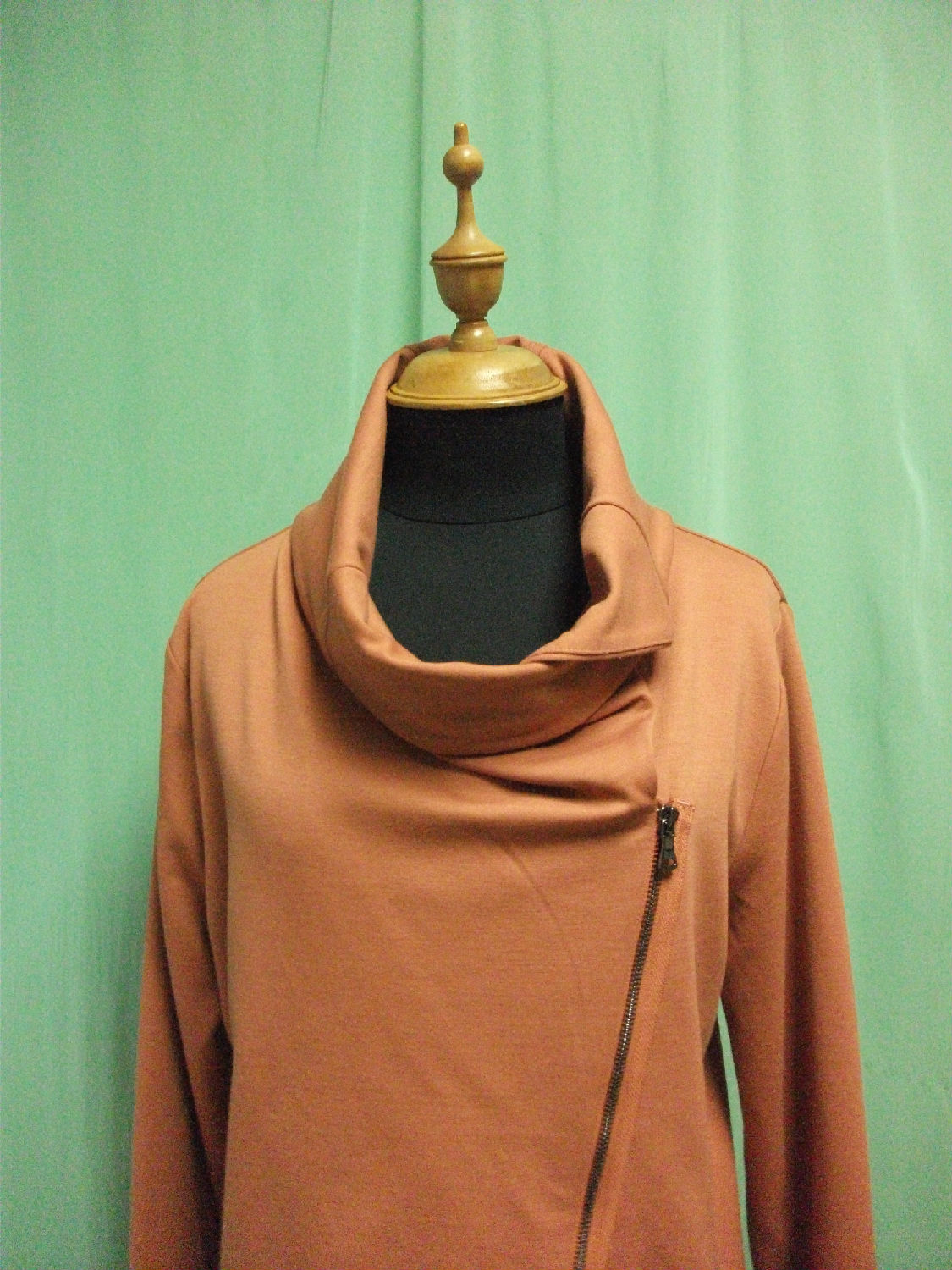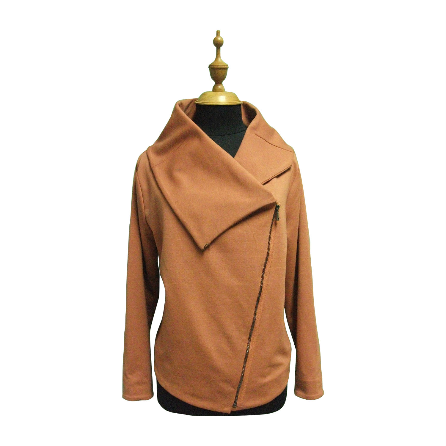 Slant zipper open front jacket, asymmetrical shawl collar, straight welt pocket with zipper closure, fully lined with woven teffeta