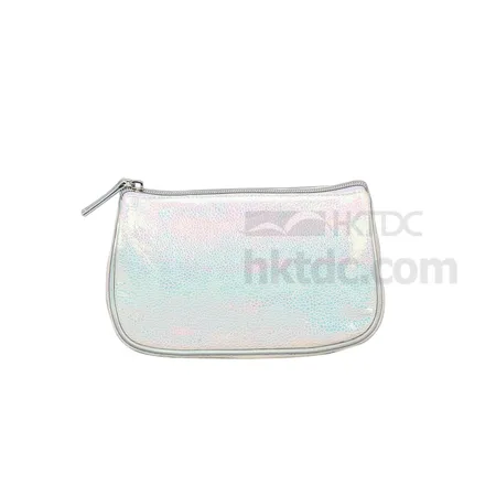 This classic cosmetic bag is made of grainy PU leather, boasting a fancy look with a shiny, iridescent finish in the shades of pink and white. With a large-capacity main compartment, keeps your cosmetics with you wherever you go with a secure zipper closure. Coming with a polyester lining and piping details, this rugged, structured bag can stand for daily wear and tear.