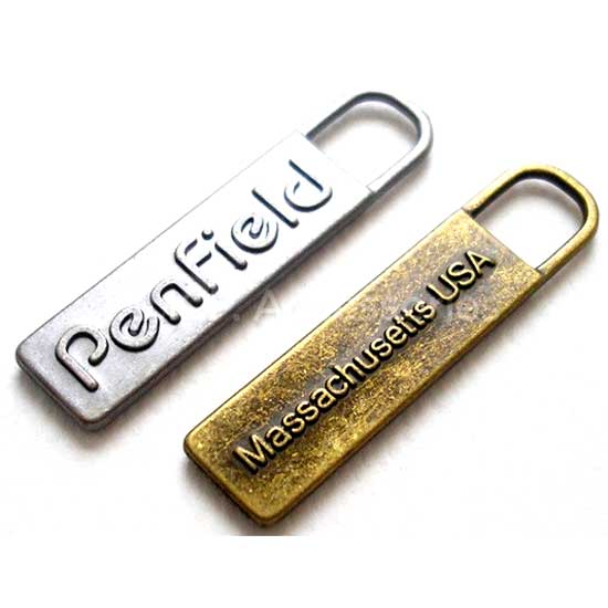 As shown is a series of zipper pullers coming with a metal structure. The pullers feature embossment of brand names and logos. Shiny, matt and vintage finishes are optional according to customers’ requests.