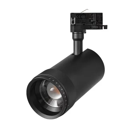 This zoom track spotlight is a high-end lighting device installed on the track. It has a precise zoom function and can flexibly switch between narrow-beam precise focusing and wide-beam large-area lighting. Equipped with high-quality light sources, the light is bright and has high color reproduction, which can delicately present the texture and color details of the illuminated objects. The lamp body moves smoothly on the track, and the lamp head angle is easy to adjust. Its simple and technological-sense appearance can also enhance the style of the space.