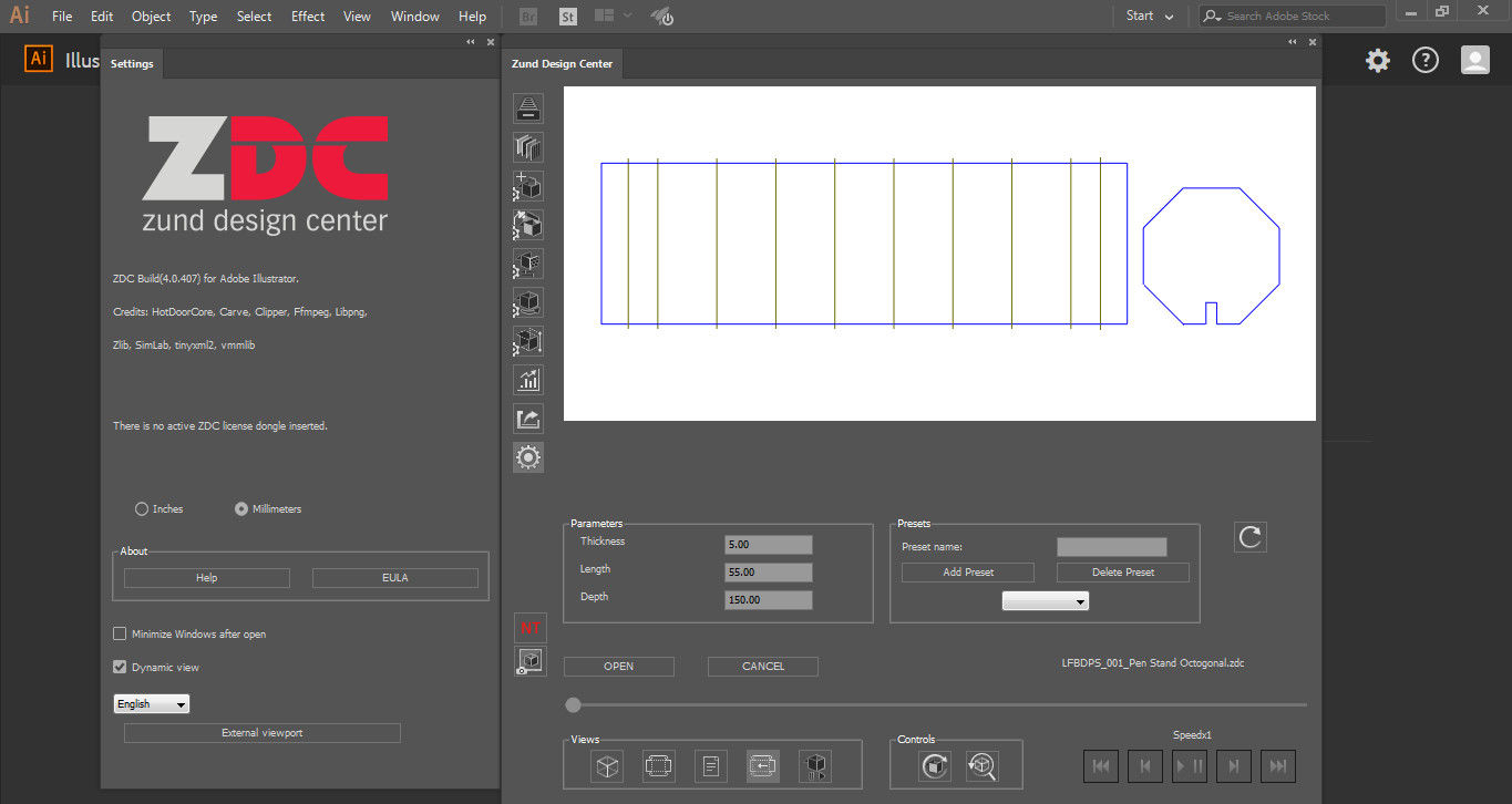 In the ZDC library, hundreds of templates are available and ready for use as designs in folding carton, corrugated cardboard, foam board, honeycomb display board, PP, PVC, and MDF. Four different views are available to facilitate choosing the right design. All designs in the ZDC library are parametric. This means that all you have to do is enter the most relevant measurements, and all others will be calculated and adjusted according to the specified material thickness.
