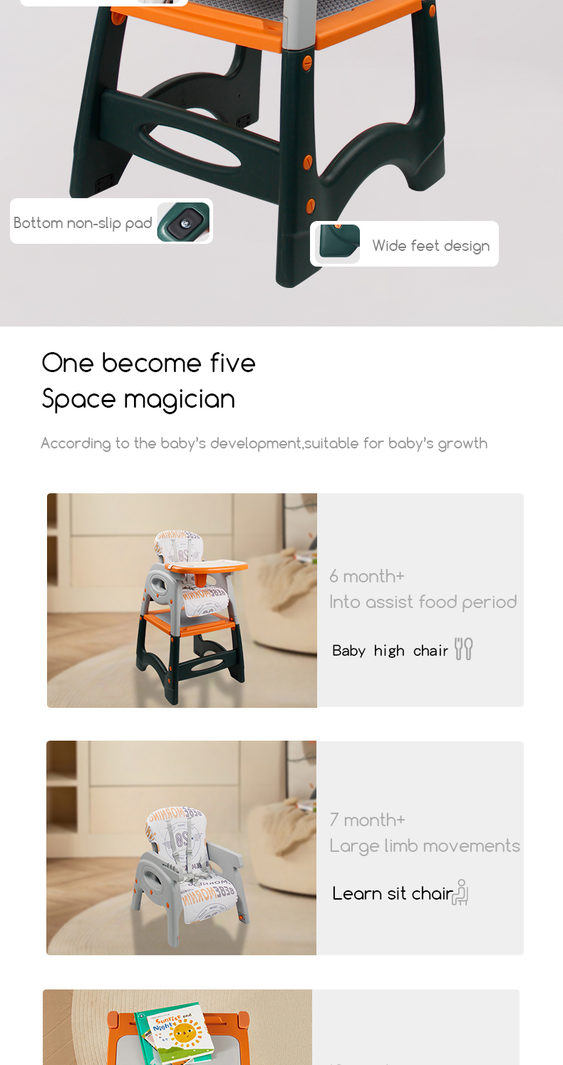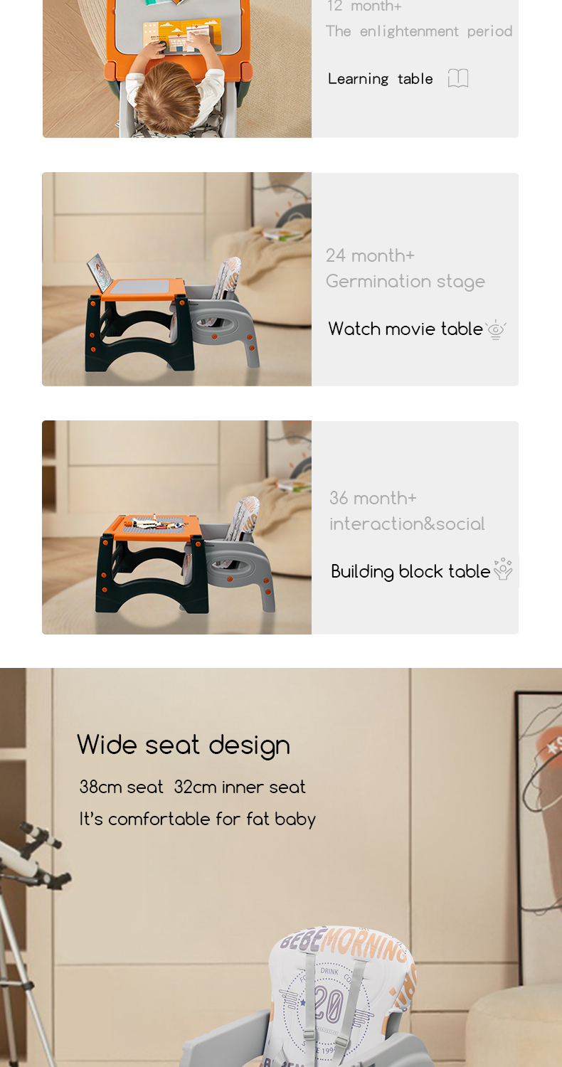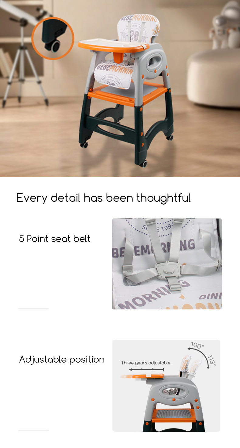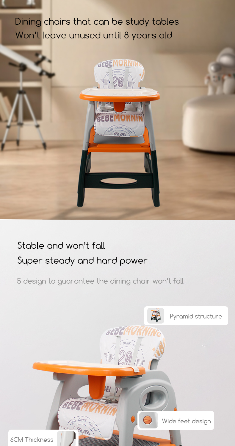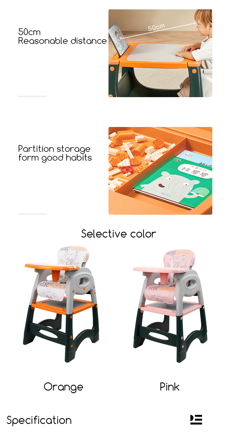 5-in-1 dining chair: variable table chair, learning chair, learning table, viewing table, building block table.