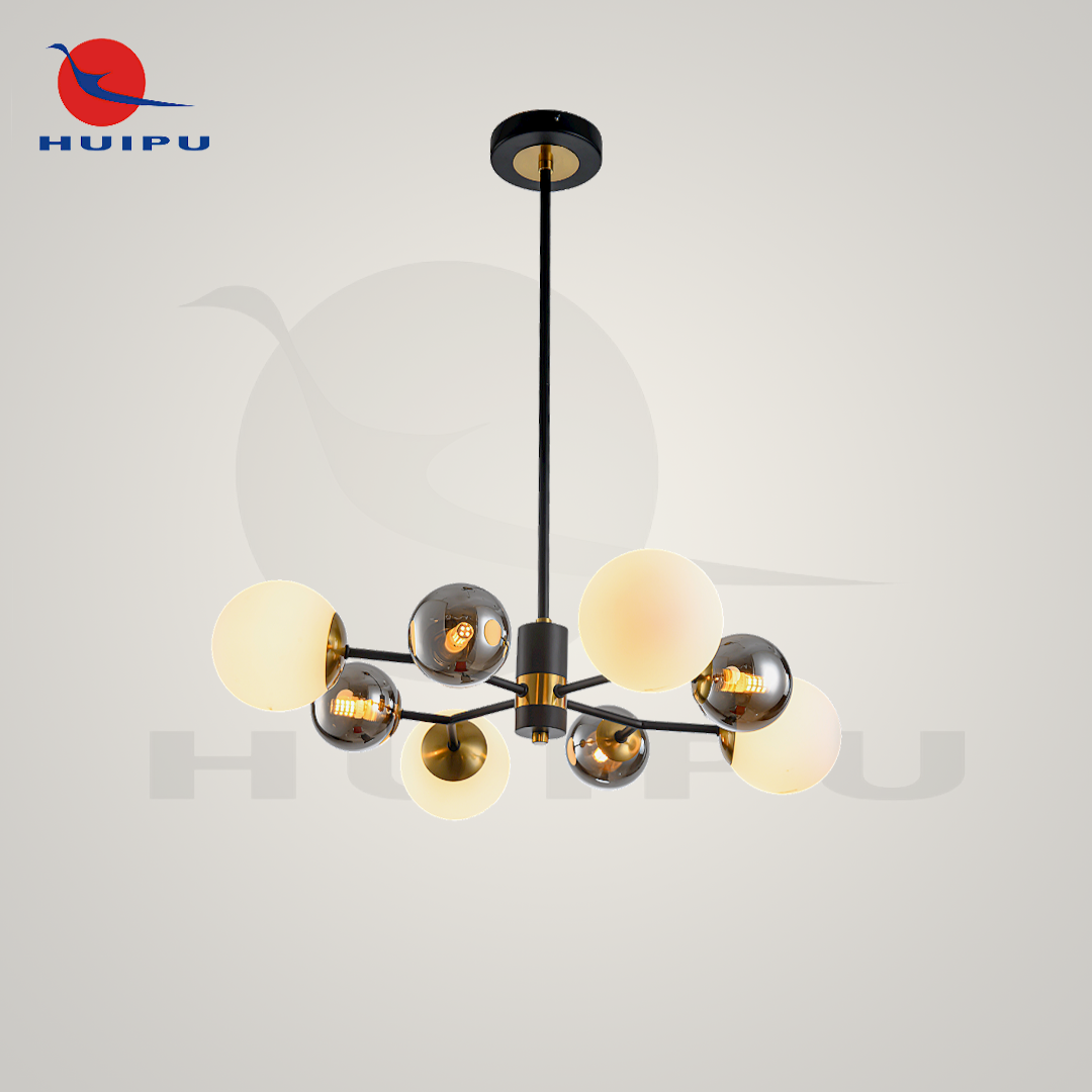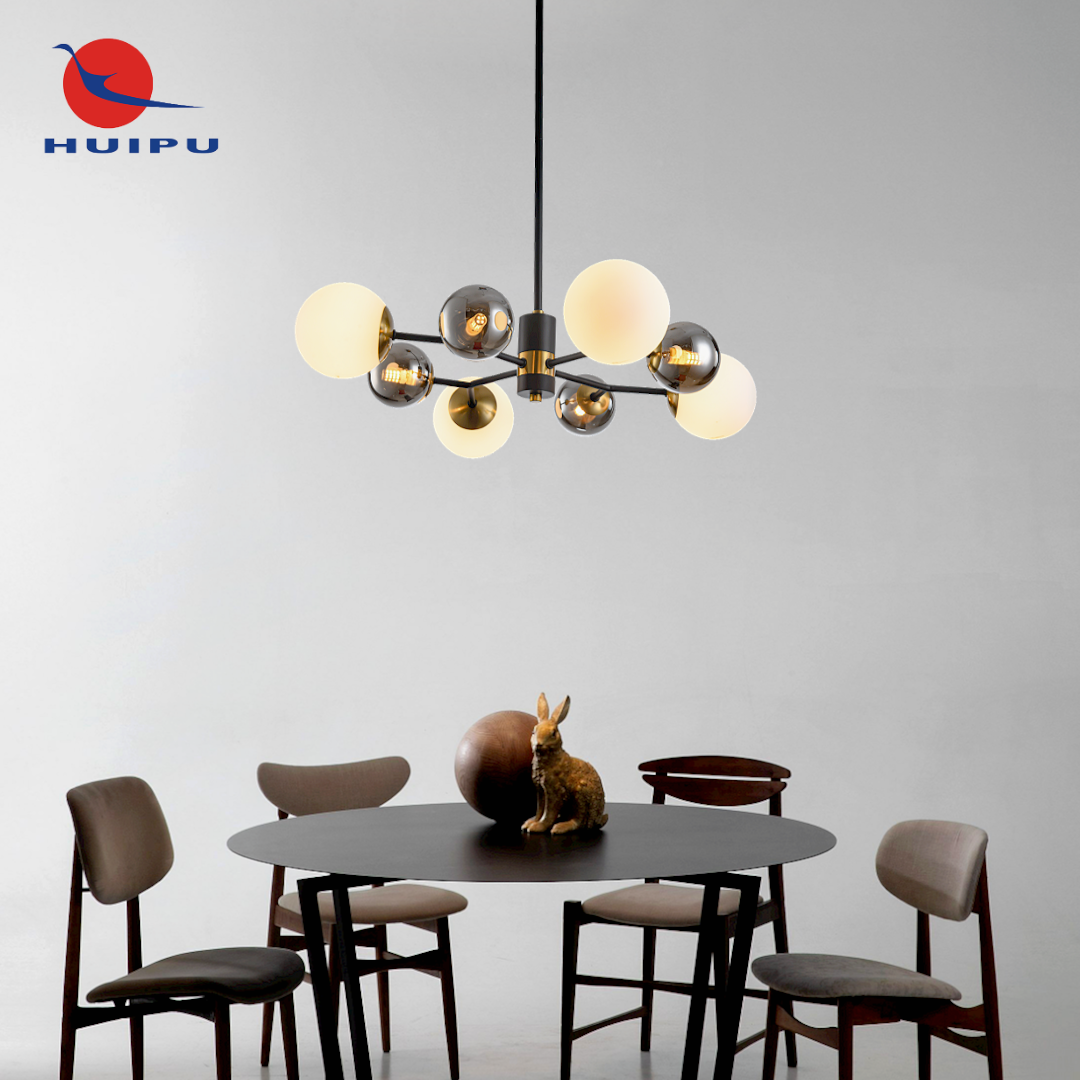 Opal white glass and smoky grey glass lampshade will be unexpectedly harmonious when they match together, this chandelier is perfect for living room, dining room and many other indoor spaces, and to create a sci-fi avant-garde atmosphere to the surrounding. Also a popular design chandelier in the Western market.