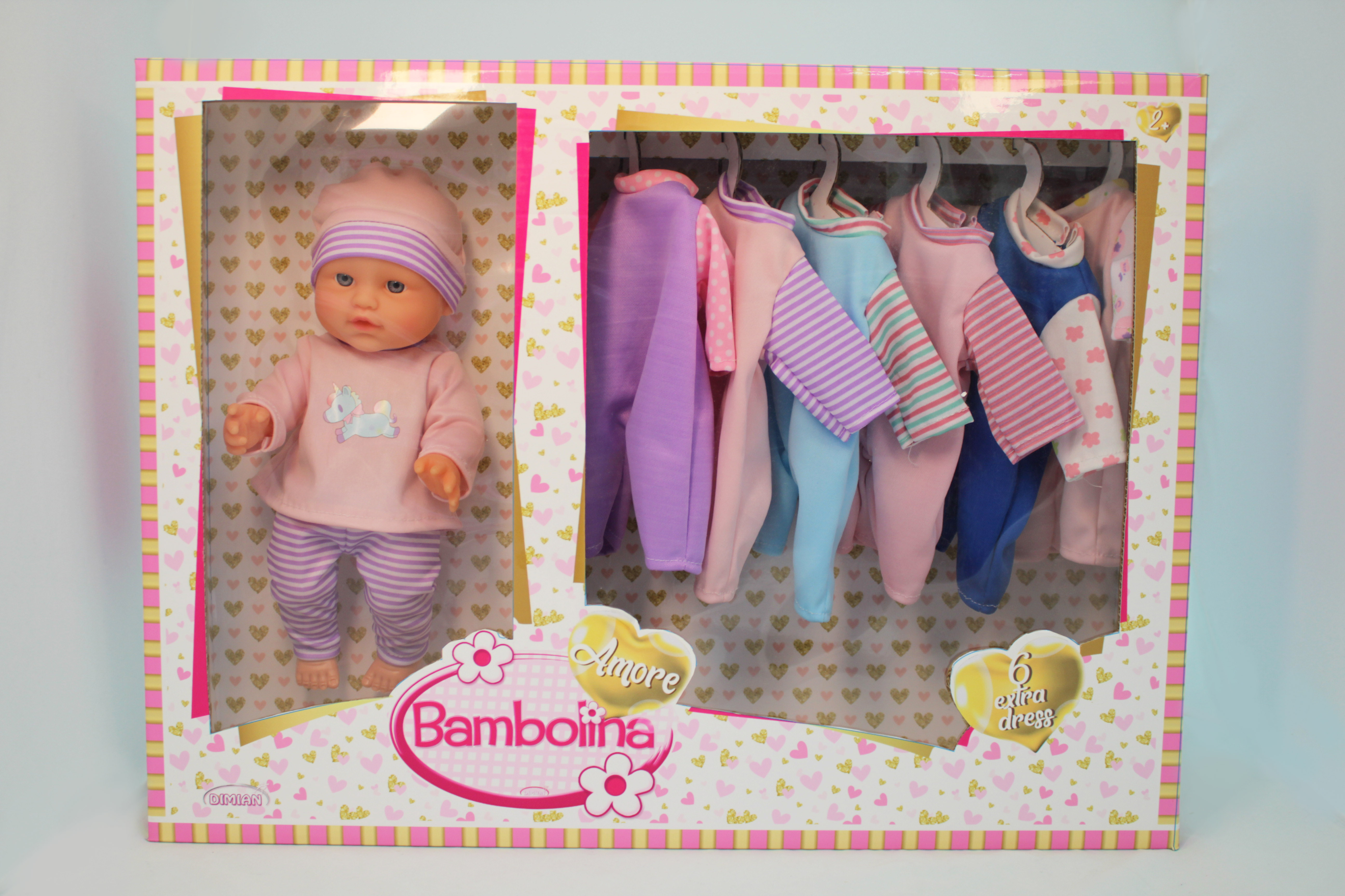 30cm blow mold doll with nice face . each doll with 6 extra dress