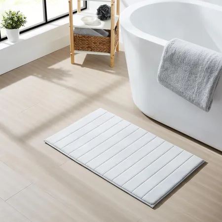 Memory foam bath mat, 50x80cm, Embroidery, gray, 100%polyester flannel, Anti-slip