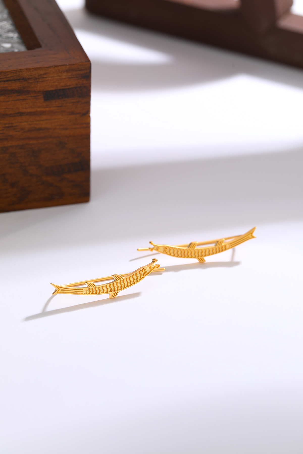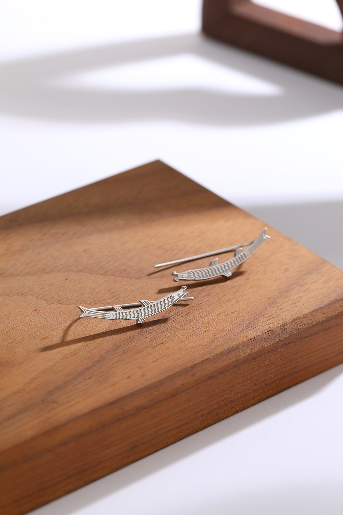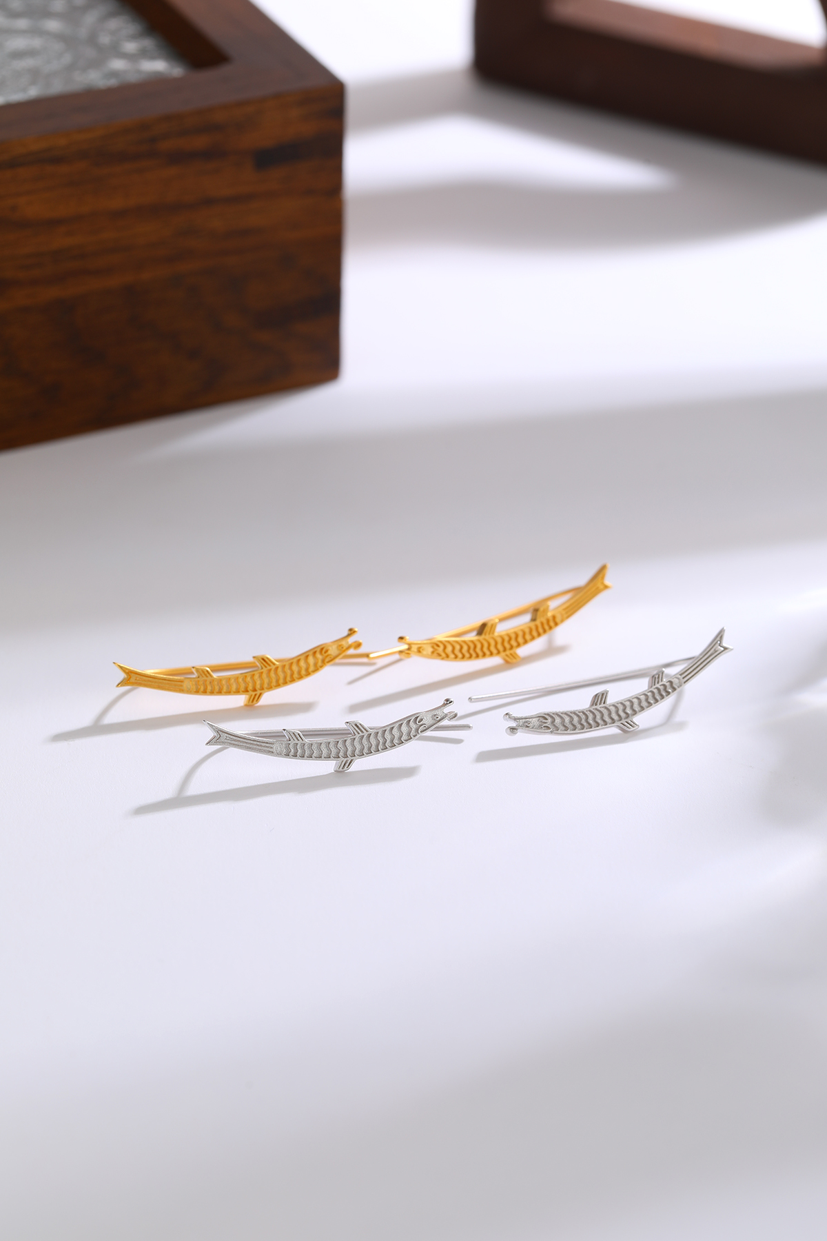 The double-fish earrings are vivid and lively, encircling the ears gracefully.