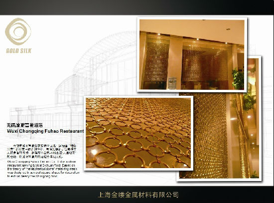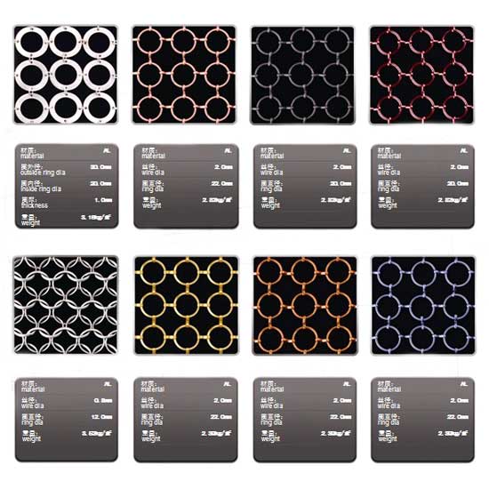 The outlined stainless steel ring mesh, as known as a metal ring mesh, is ideal for cryogenic, high-temperature, corrosive atmosphere, heat-conductive, high-usage, or special service applications. It is widely used in slaughterhouses, aquaculture farms, poultry farms, public dining halls, supermarkets, laboratory protection and so on. Made of wires of aluminum, copper and steel, the ring mesh can be formed in any sizes and shapes upon client’s requests. The formed mesh is often hung as partitions in different colors, presenting a brilliant shine.