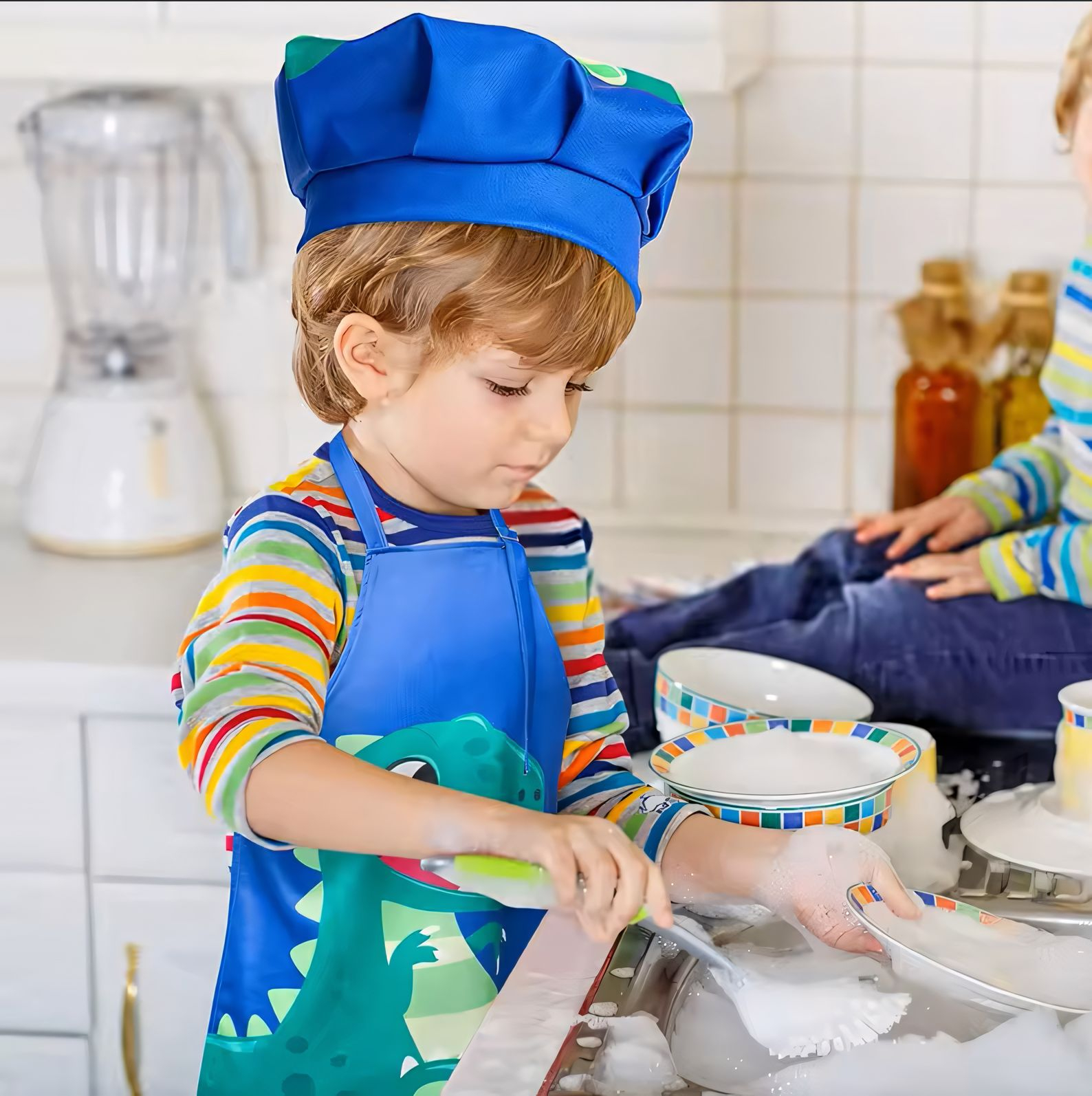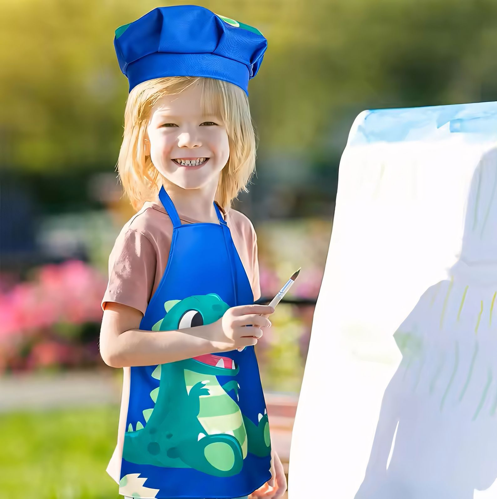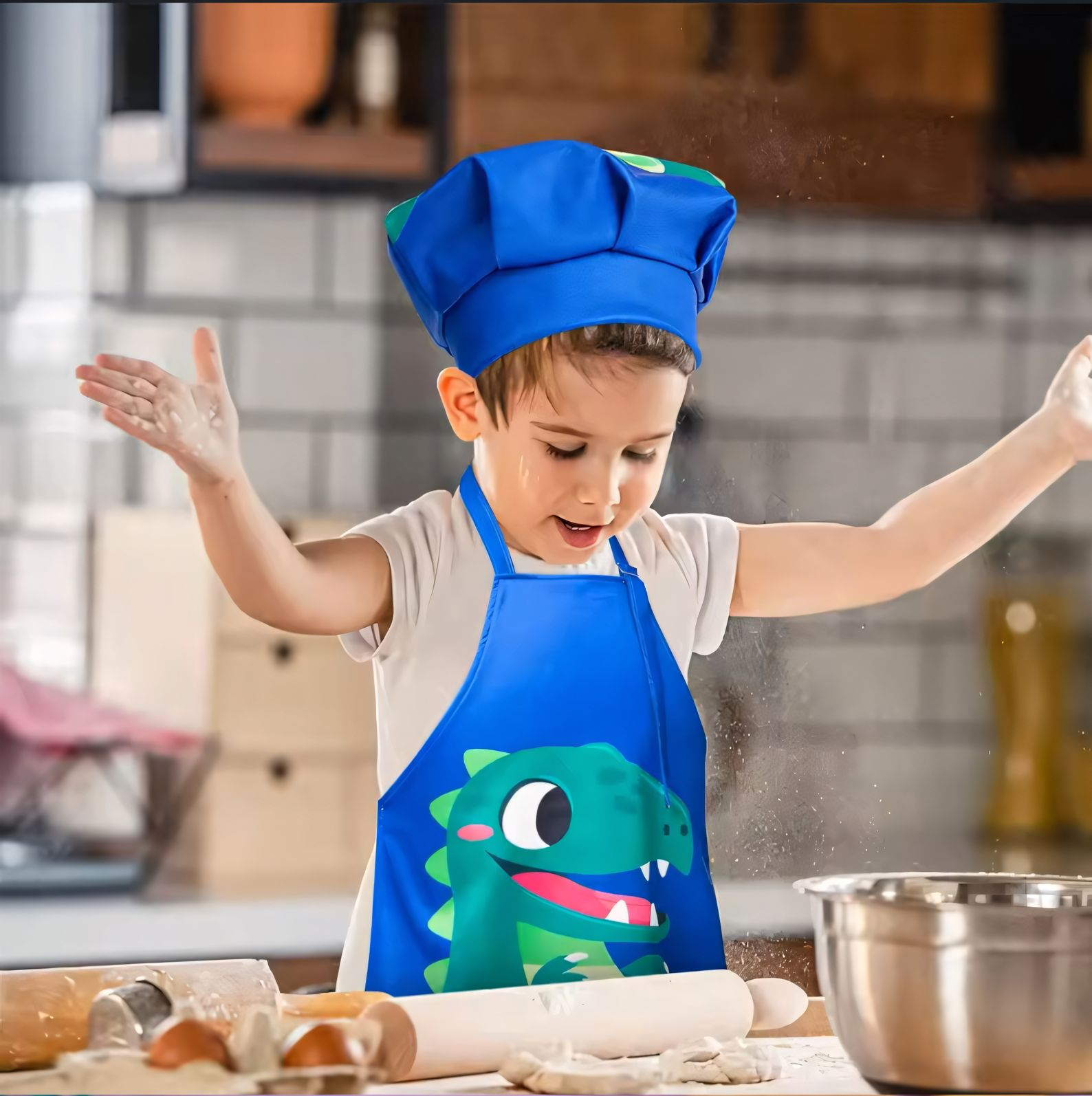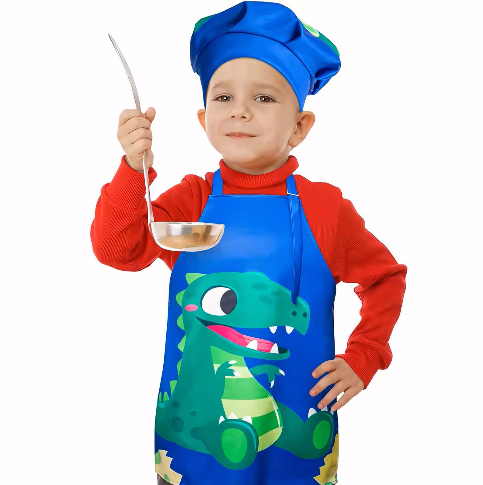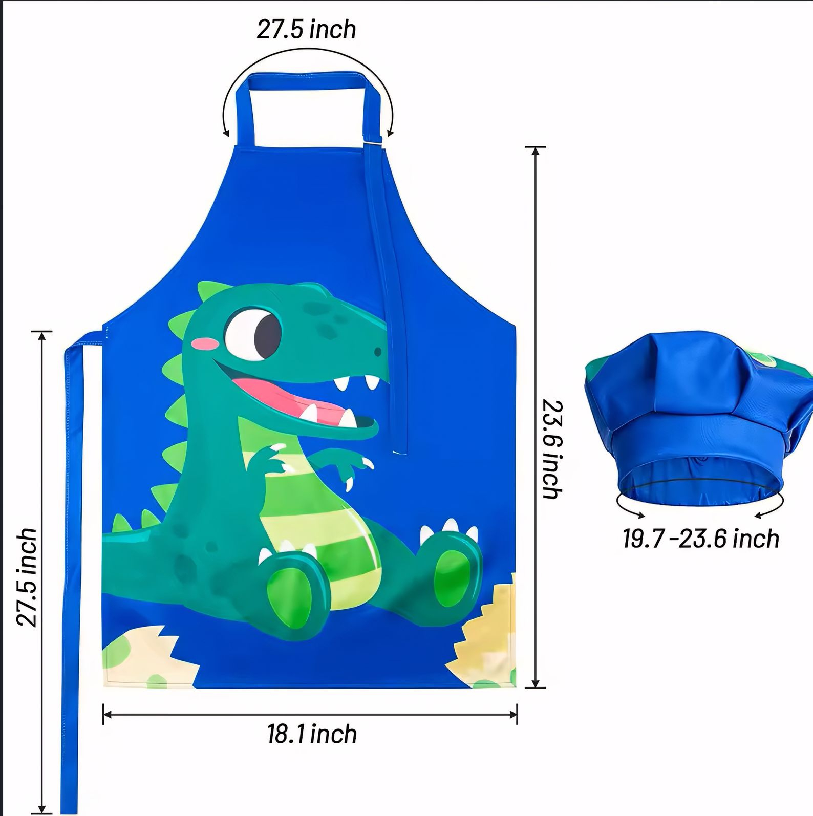 | Product Name | Children chef uniform apron and chef hat set | Style | the apron is printed with cute,fun dinosaurs. |