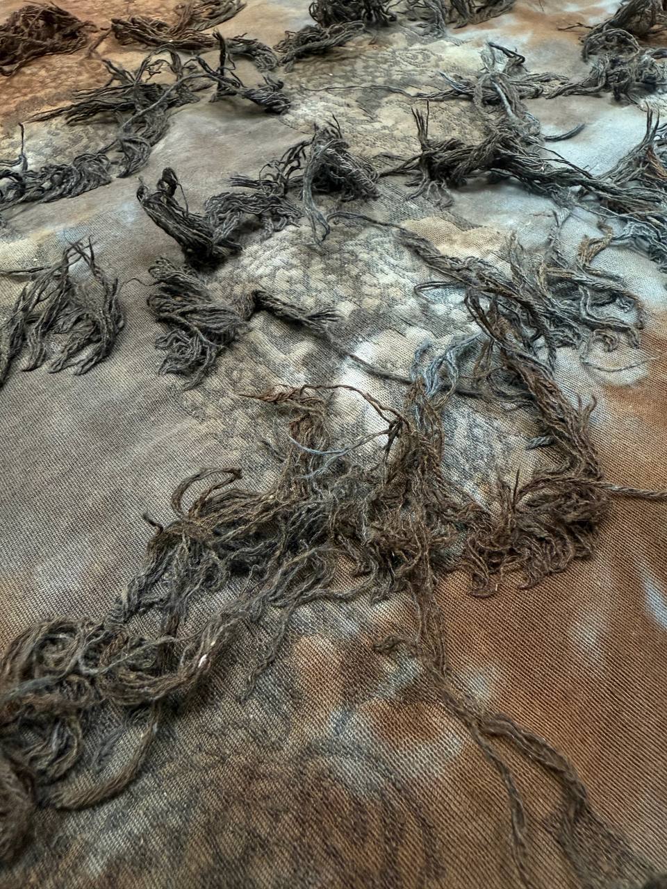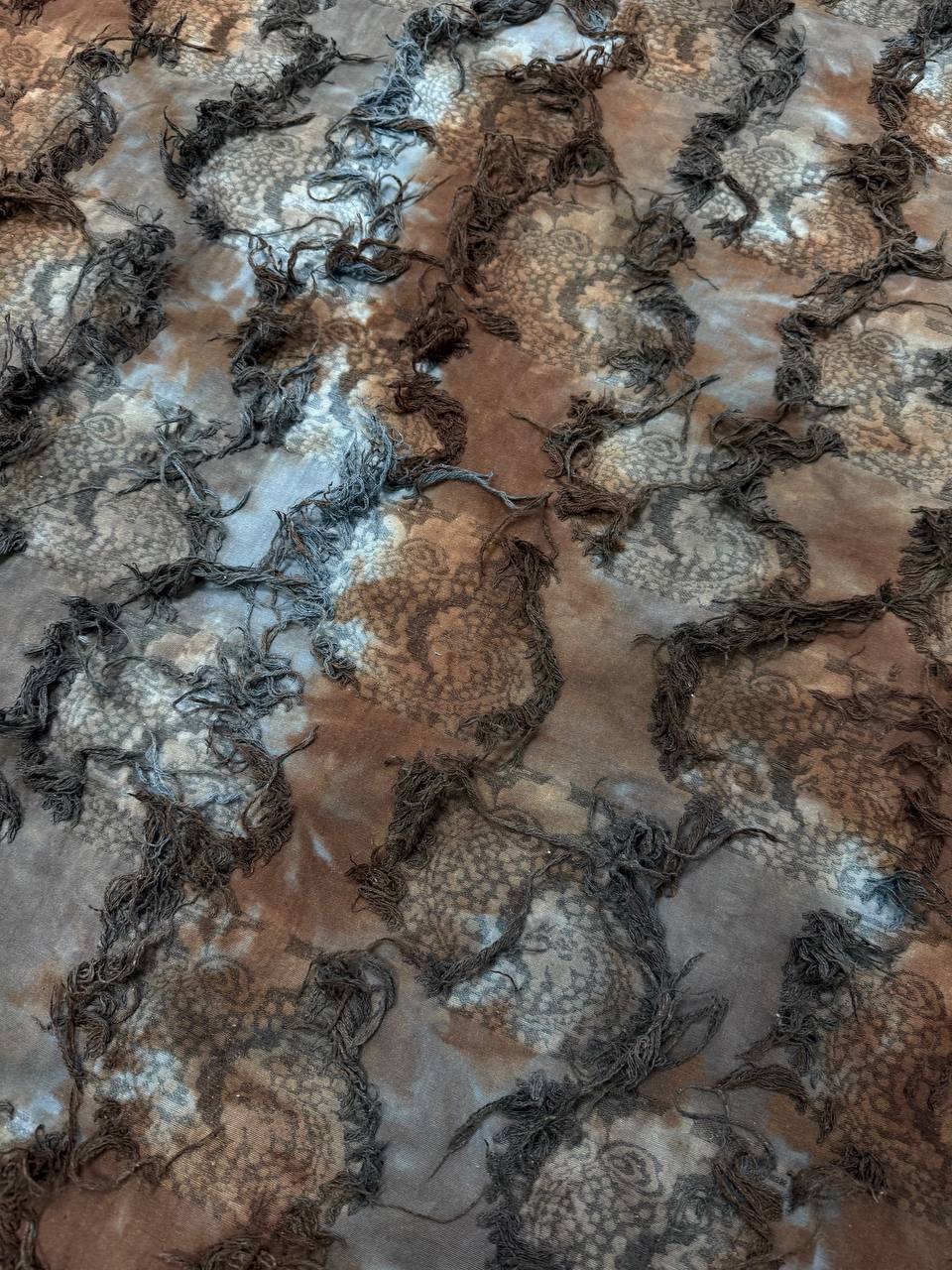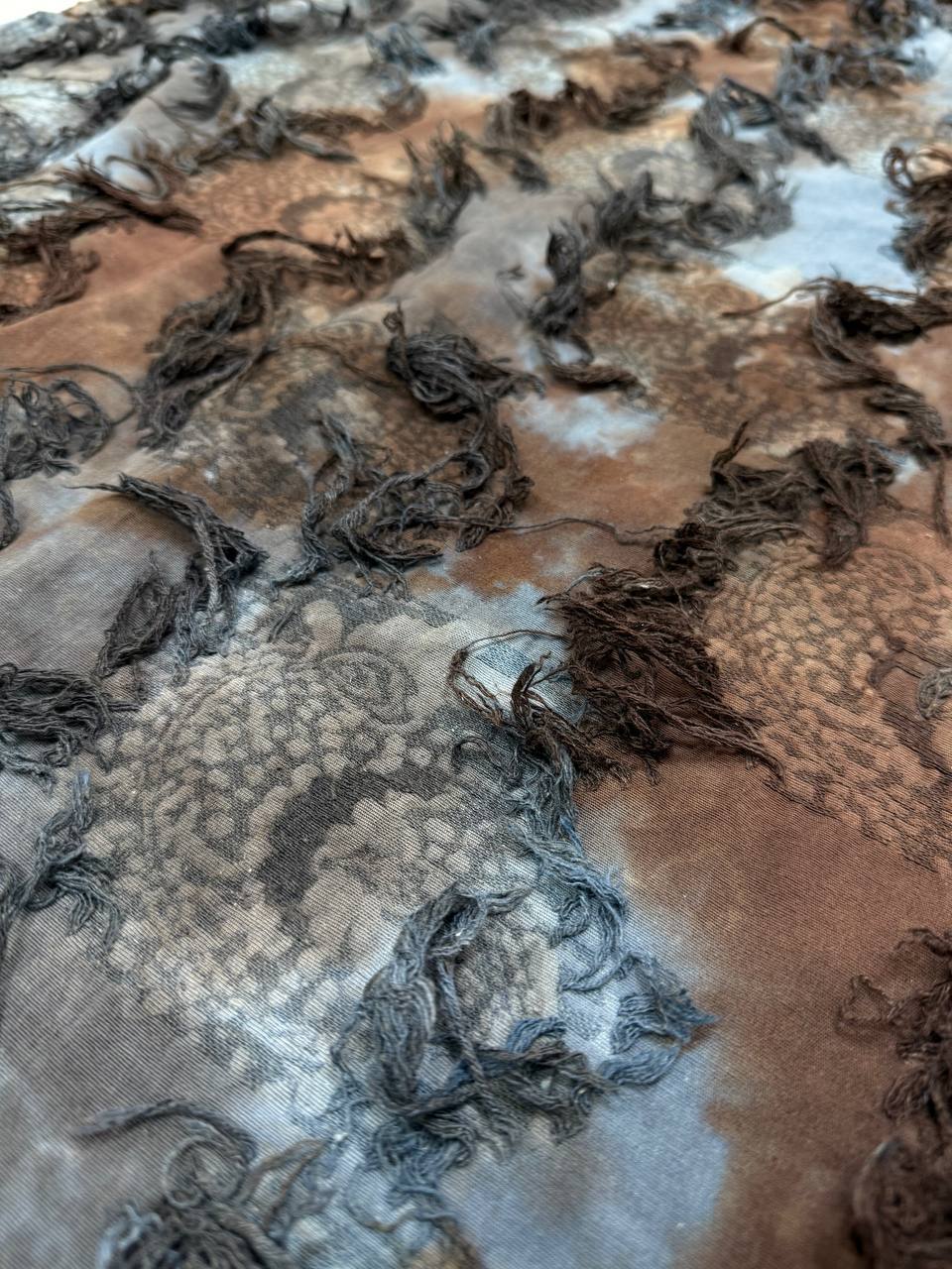 A high-quality material with a natural composition that includes cotton, linen, and viscose embodies the harmony of natural texture and modern design. The fabric is pleasant to the touch, breathable, and ideal for creating comfortable clothing and accessories. A unique monochrome pattern adds expressiveness to the fabric, making each item truly one of a kind. Voluminous, soft threads that rise from the surface create a distinctive texture, adding an extra decorative effect.