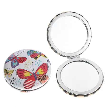 custom printing butterfly round 70mm diameter pocket makeup mirror