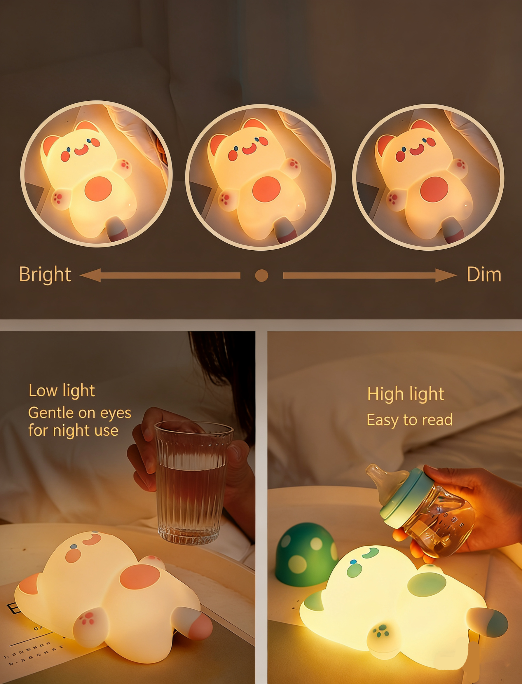 💡 3-Level Brightness – Soft & eye-friendly, from night light to reading light