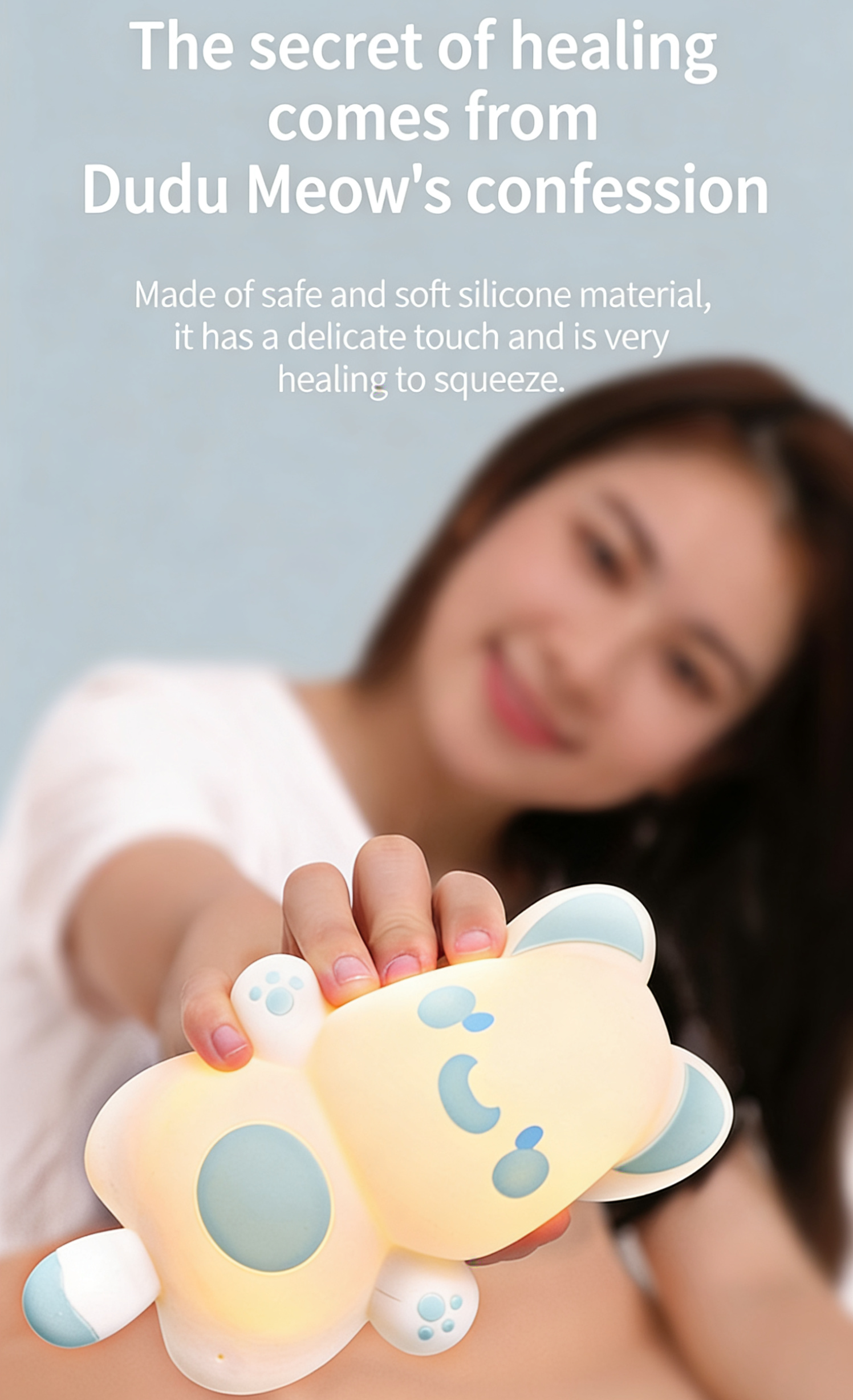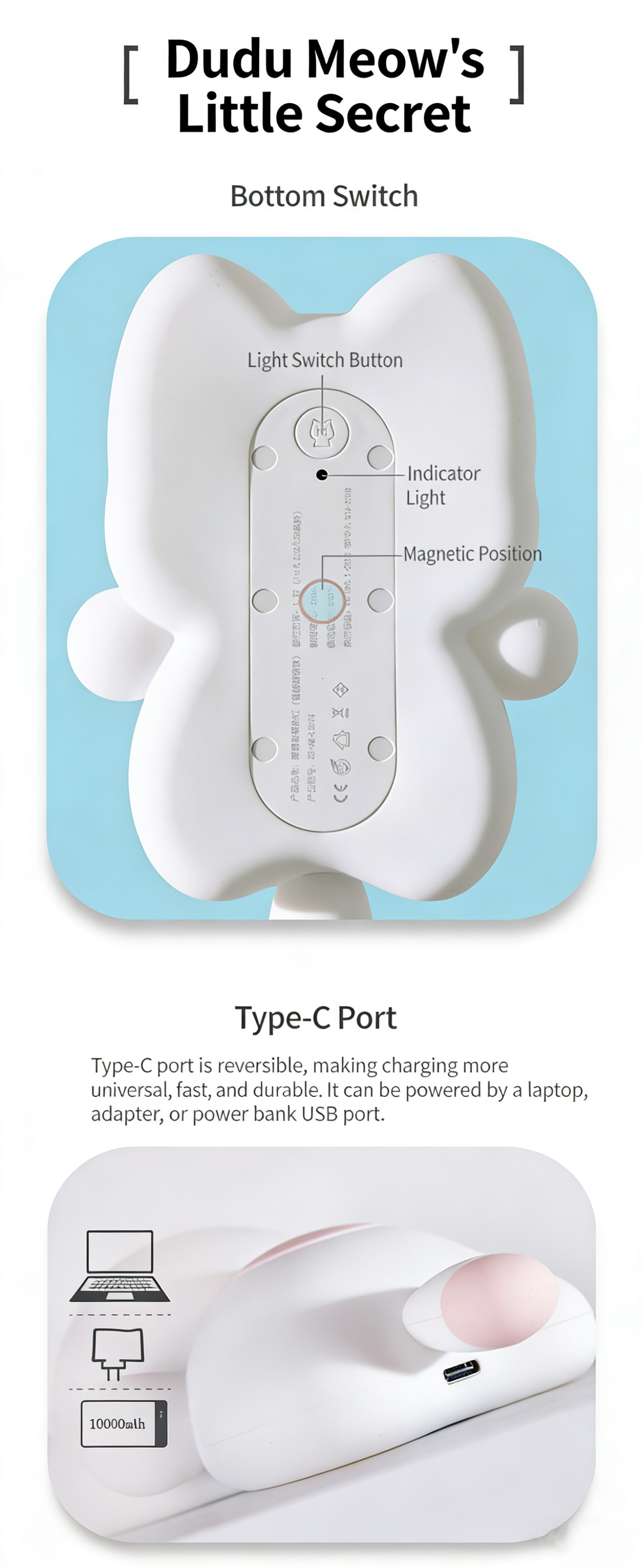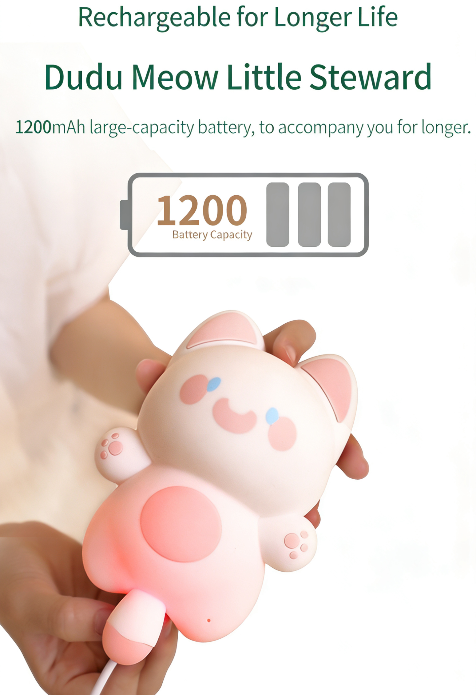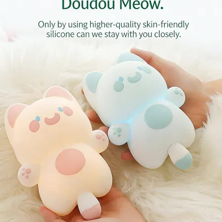 Dudu Miao is a cute smart cat night light that listens to you. Built-in AI voice recognition (no internet needed) – control on/off, brightness, and color by voice. Features 3-level dimming, timed sleep, magnetic mounting, and 1200mAh battery. More than a light – a warm companion.