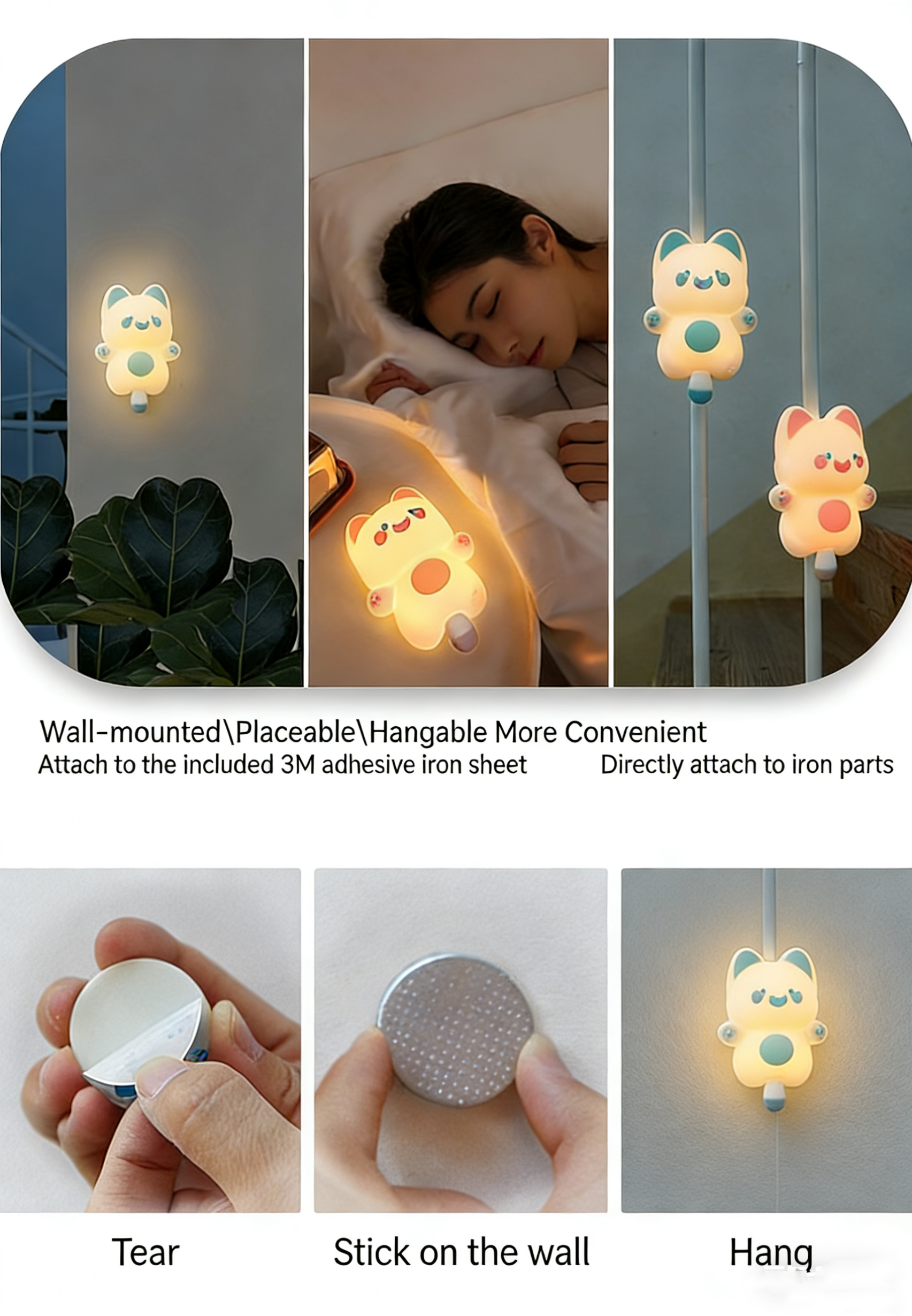 🧲 3-in-1 Mounting – Placeable / Wall-mounted / Hangable (magnetic iron sheet included)