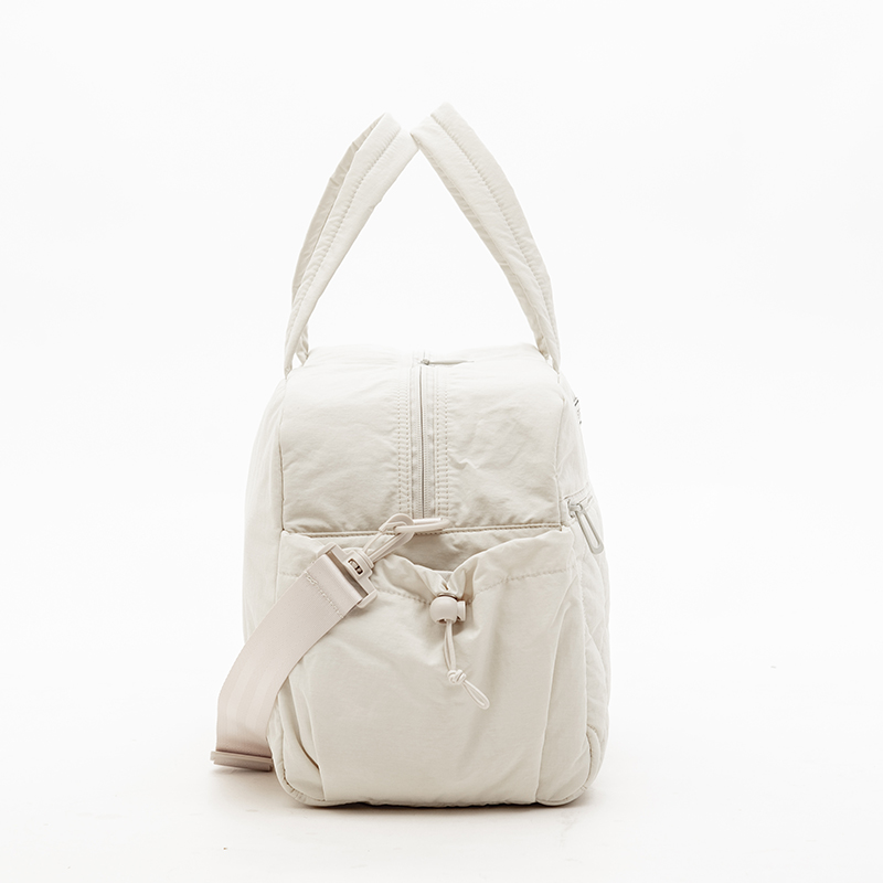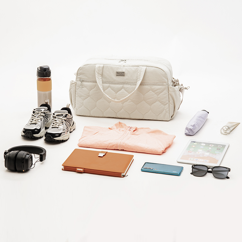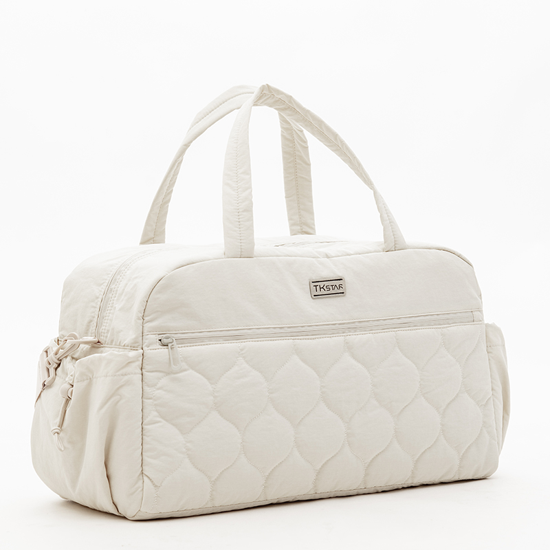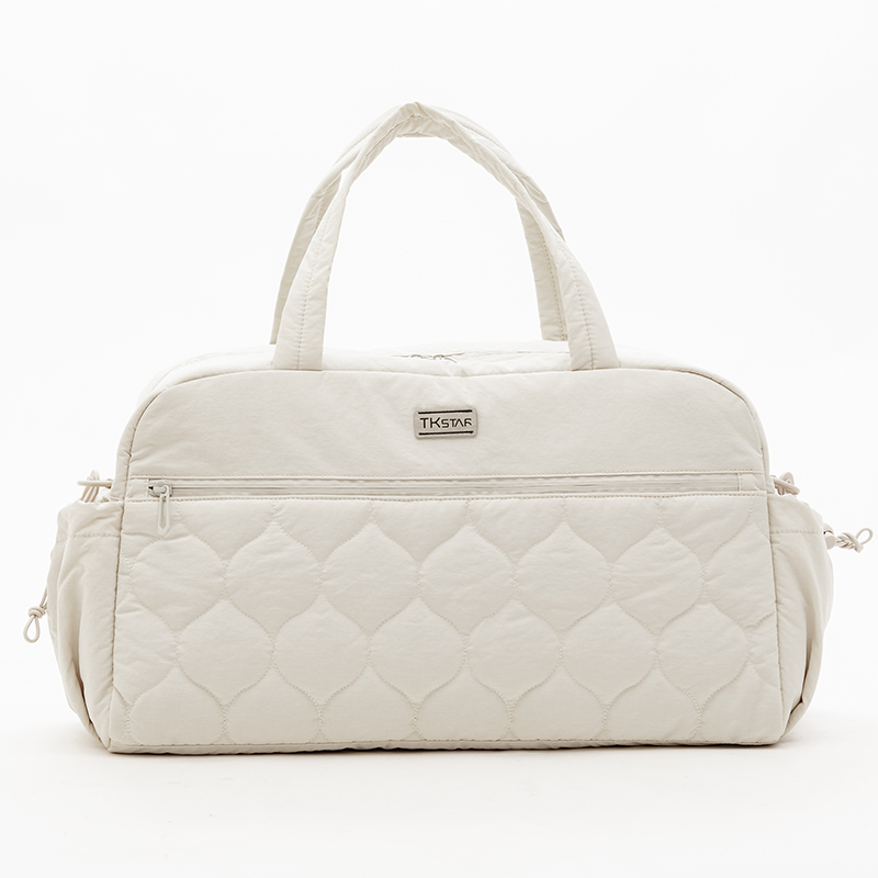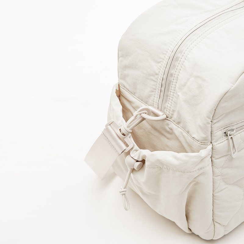 This duffel bag is made of soft Taslon fabric, quilted design, foam padded puffy. waterproof pocket.
