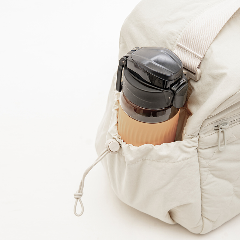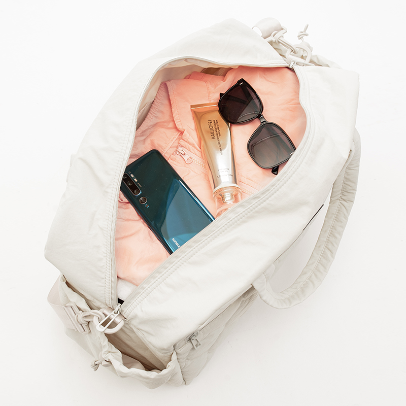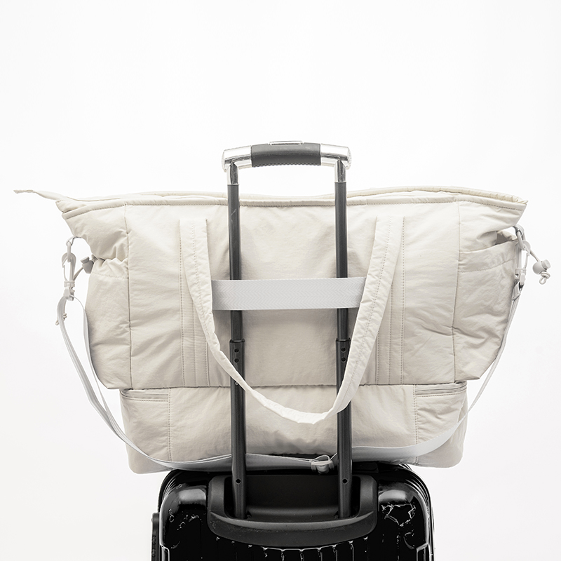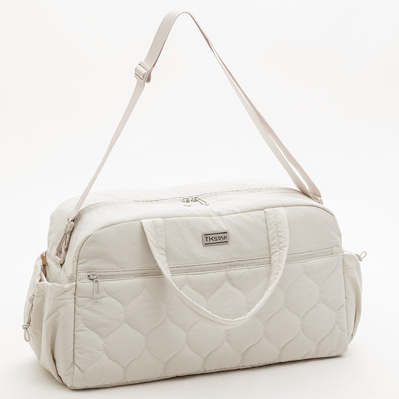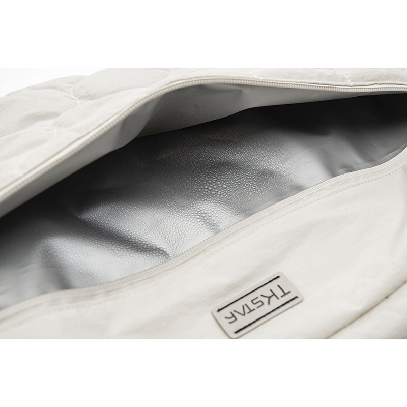 This duffel bag is made of soft Taslon fabric, quilted design, foam padded puffy. waterproof pocket.