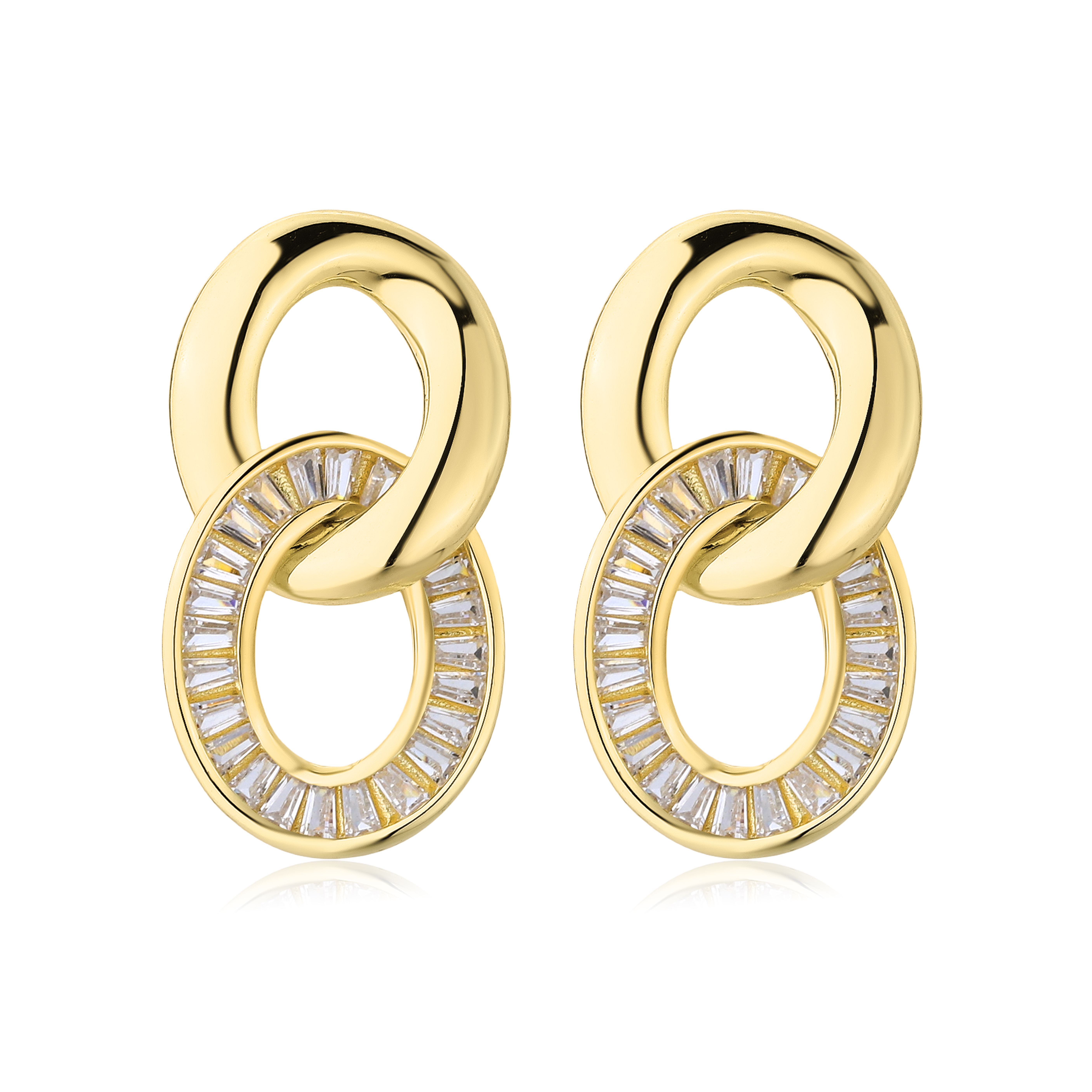 -- earrings featuring a hoop design with CZ accent, available in base metal options including 925 silver, gold, and brass.