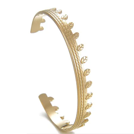 gold plated tree leaf c shaped bangle french style cuff bangle in stainless steel