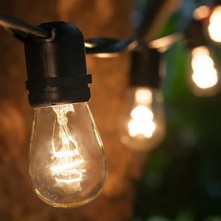 Our heavy duty light strings are perfect for permanent outdoor lighting applications. These durable and commercial light sets have 50 medium base sockets spaced 24" apart on Black 16 gauge SPT-2 wire. Each string comes ready to plug in and do not have end-to-end plugs. This product is perfect for our 11 watt Incandescent S14 bulbs or 1 watt LED S14 Bulbs.
