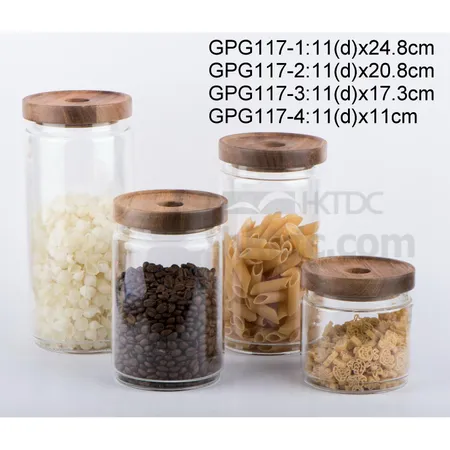 Description:High borosilicate food glass jar with acacia wood lid can be stacked up