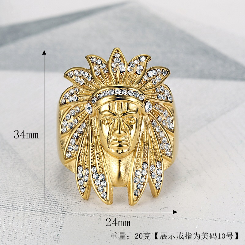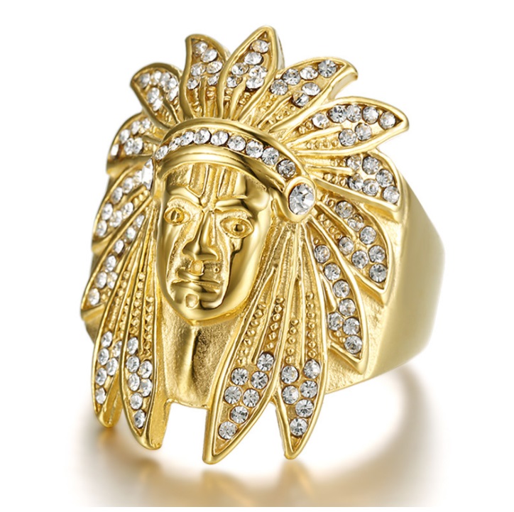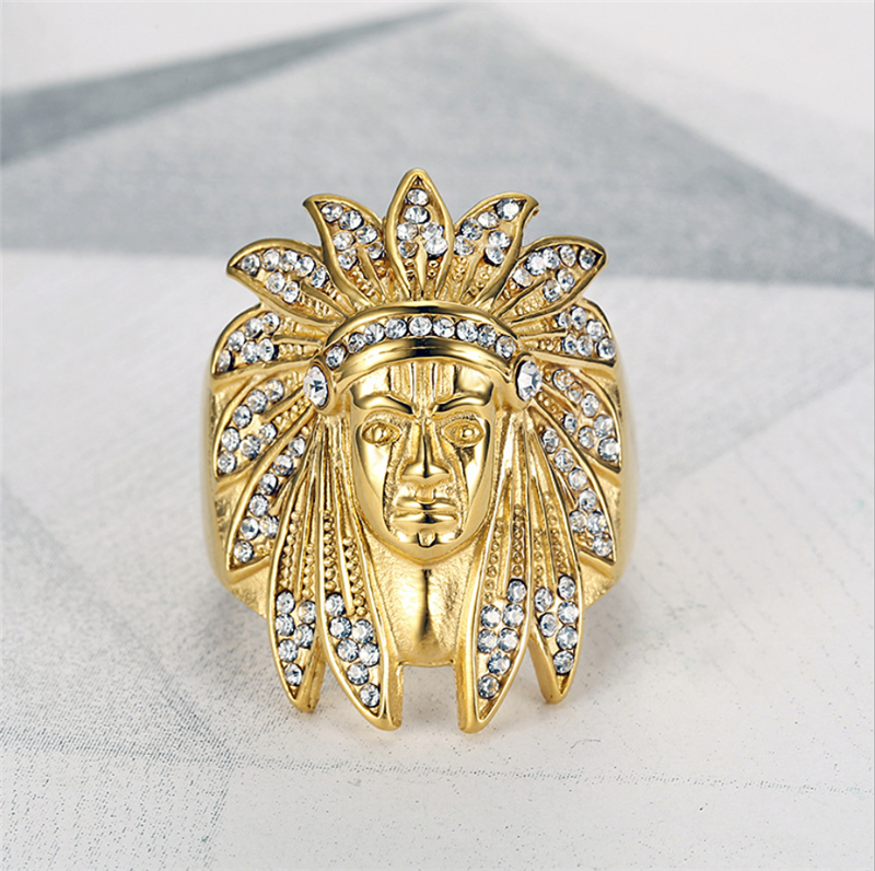 hip hop ring stainless steel gold plated Diamond Indian Chief man's ring