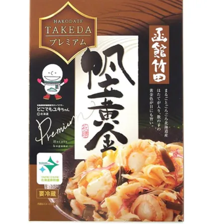It is a dish made by mixing scallop strings with fresh ingredients such as herring roe, kelp, artificial shark fin and red seaweed.