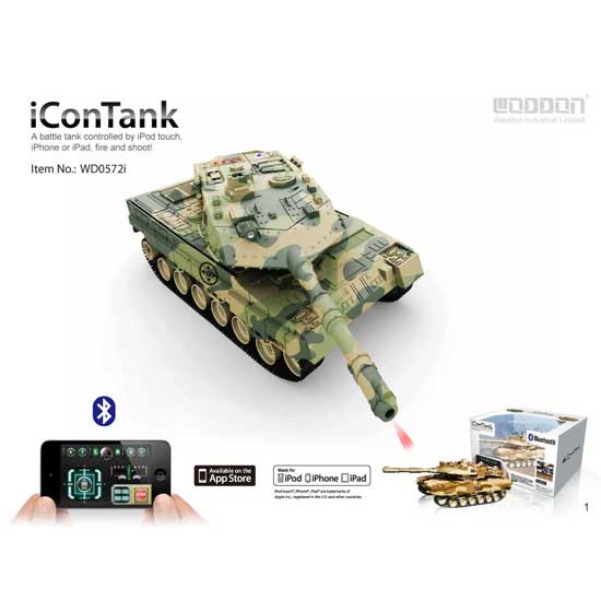 The iCobTank is a fighting tank controlled by smartphones, tablets and other mobile devices like the iPod touch, iPhone or iPad. It features a vivid and realistic appearance with a camouflage exterior. Enjoy your spare time with your beloved kids with this funny battle tank.