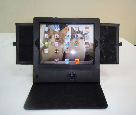 This featured iPad case combines a bulky case with a pair of subwoofer and slim speaker. It features sleep/awake function with multi-angle views. It is manufactured with exclusive patented design and technology to ensure reliable performance.