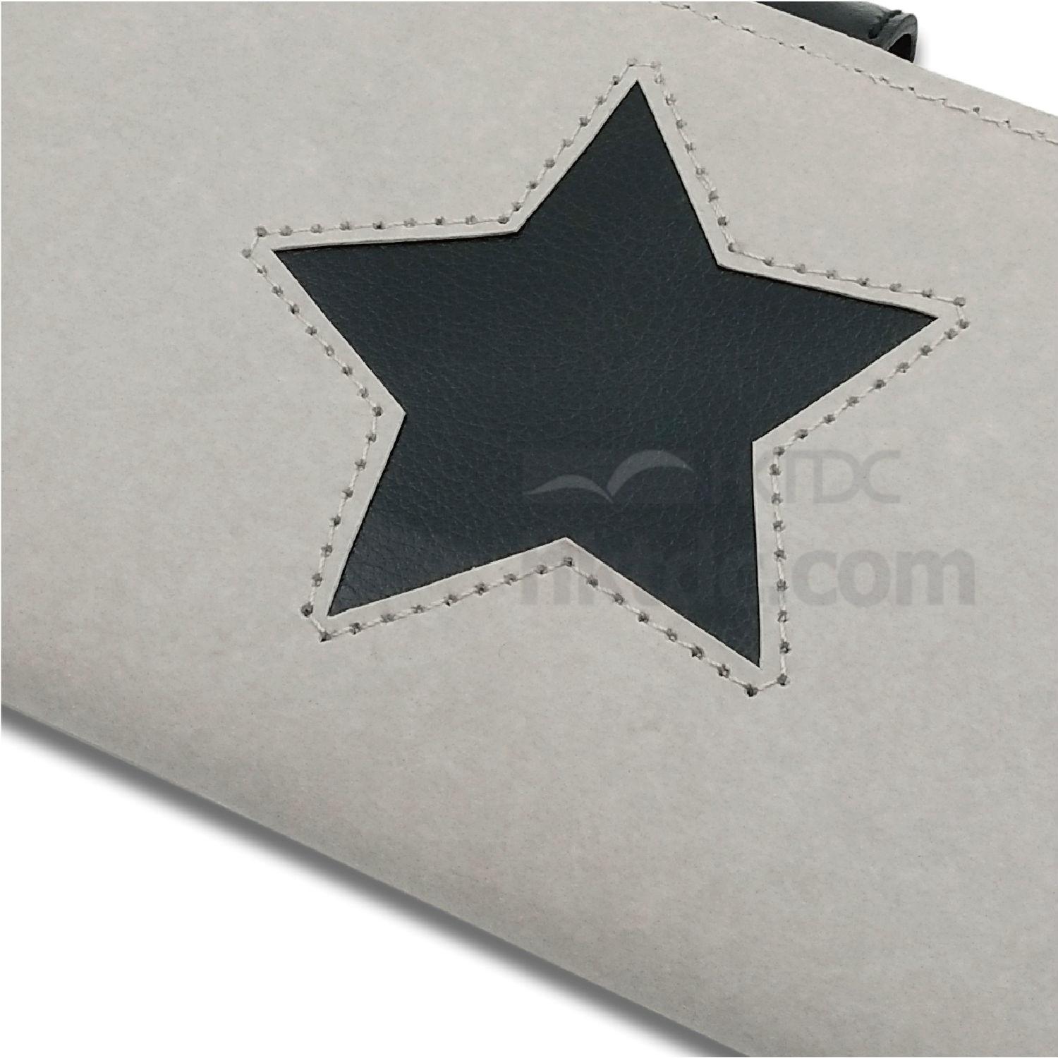 This paper mobile phone wallet offers a handy and lissome option to carry your mobile phone, money, and cards for work or casual outings. Its interior is finely compartmented with multiple pockets to keeps your belongings neatly organized. Detailed with a star panel on the exterior, this carrier is sleek enough to complement your savvy ensembles.