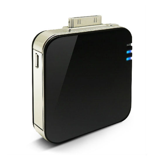Pictured is a classy iPhone charger with power indicators. The cool black finish offers modern elegance. With this deluxe battery pack, it lets you charge your iPhone and iPod in a hurry, giving it an extended life anytime.