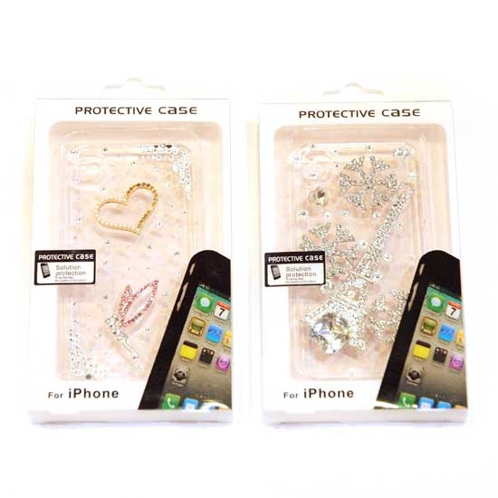 Available are protective cases designed for Apple iPhone. Made of durable plastic material, the cases keep your iPhone away from scratches and damage. These cased are decorated by the beautiful crystal stones for added glamor.