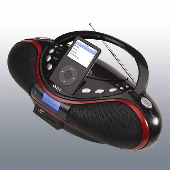 The boombox features an iPod dock that enables you to play and charge the iPod at the same time. This multifunction boombox comes with a built-in PLL AM/FM stereo radio. You can enjoy great music anywhere with this portable and stylish boombox.