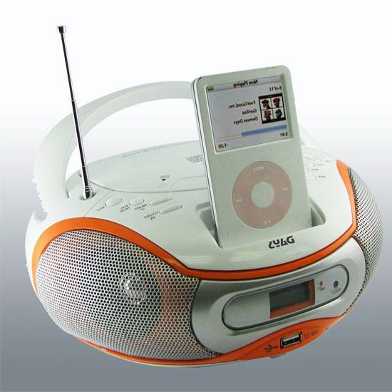 The iPod docking boombox enables you to play and charge the iPod at the same time. This multifunction boombox comes with a built-in PLL AM/FM stereo radio. You can enjoy great music anywhere with this portable and stylish boombox.