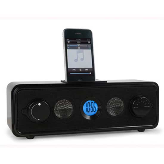 This iPod docking station features powerful dual stereo speakers with a built-in amplifier. It delivers crystal-clear audio performance simply for your enjoyment. The docking station is also a clock radio with an alarm function for an added value.