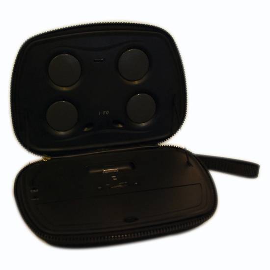 This iPod speaker is built into an enduring case for enhanced portability and durability. It boasts a bass booster that delivers incredible low-frequency performance. The storage compartment allows easy organization of the iPod and corresponding accessories. This compact iPod speaker is surely a perfect gift for iPod owners.